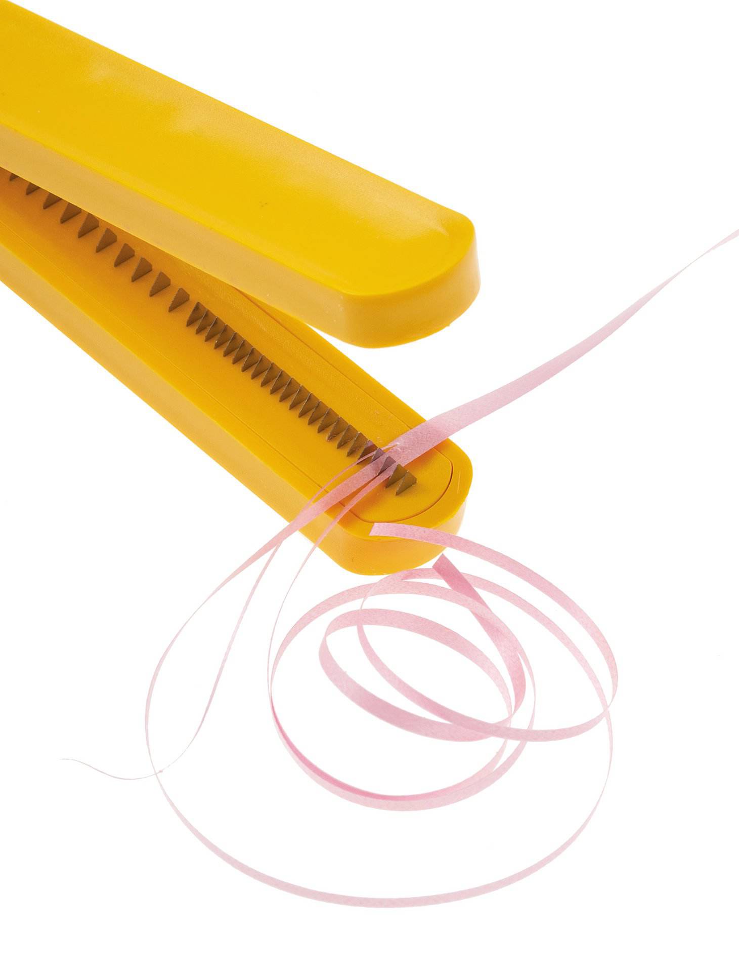 Der Bandspleißer bietet Ihnen nahezu unerschöpfliche Möglichkeitenaußergewöhnliche Geschenkverpackungen zu gestalten. Er splittet Polybänder und kräuselt sie im gleichen Arbeitsgang.