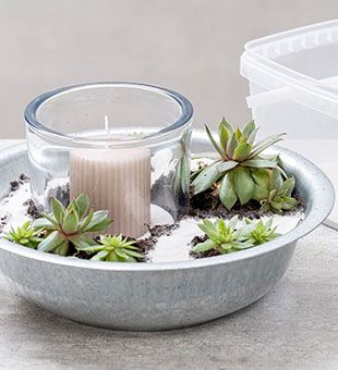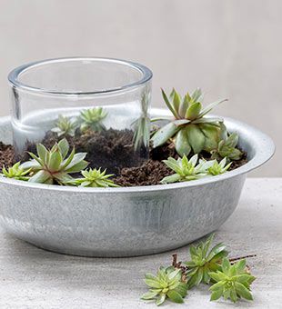 2. Ordnen Sie die Pflanzen Ihrer Wahl z. B. Dachwurz in Ihrem Gefäß an.