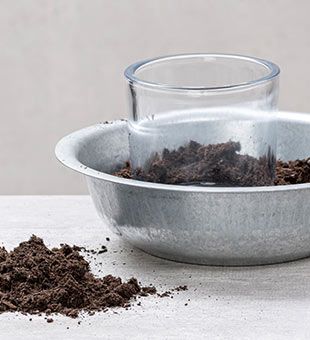1. Stellen Sie das Glas in eine Zinkschale und füllen Sie Erde hinein.