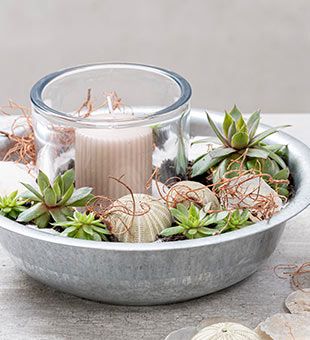 Dieses Windlicht ist ein echter Blickfang für jeden Raum und Garten. Kreieren Sie für Ihre Kunden ein authentisches Urlaubsgefühl für Zuhause. Die Kombination aus Pflanzen und Muscheln verzaubert dabei mit natürlichem Charme. Der Dachwurz kommt mit wenig Wasser aus und ist besonders langlebig. Mit minimalem Aufwand lässt sich das Gefühl von Sonne, Strand & Meer erneut entfachen.