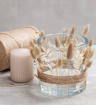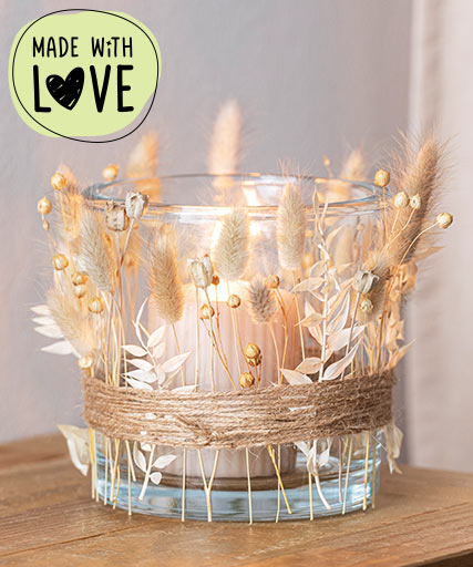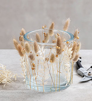 Ein Windlicht mit Trockenblumen ist eine besondere und individuelle Geschenkidee, die Ihre Kunden sicherlich begeistern wird. Diese natürliche und kostengünstige Art der Dekoration , kann fast das ganze Jahr über angeboten und zudem spielend leicht umgesetzt werden.