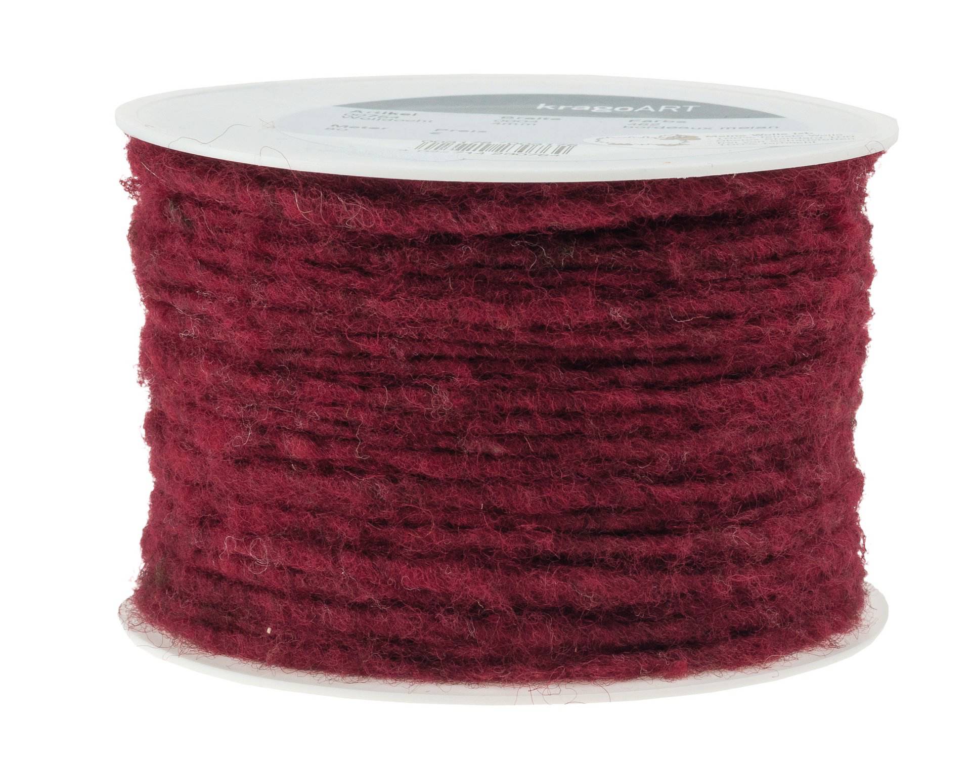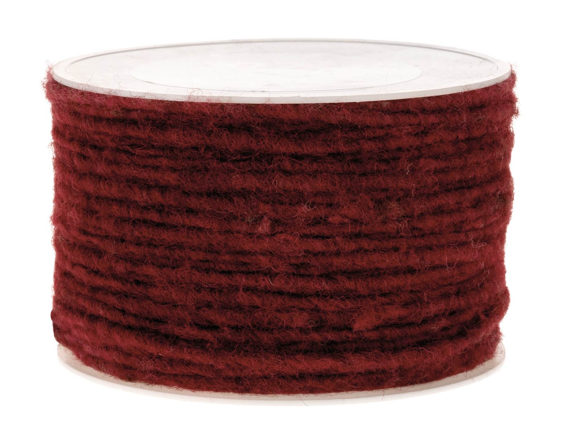 Stabile Juteschnur, die fest mit 100 % Wolle umwickelt (gefilzt) wurde. Die Wolle ist in Deutschland gefertigt, frei von jeglichen Schadstoffen (zertifiziert nach Ökotex Standard 100), reißfest, leicht zu verarbeiten und 100 % farbecht.