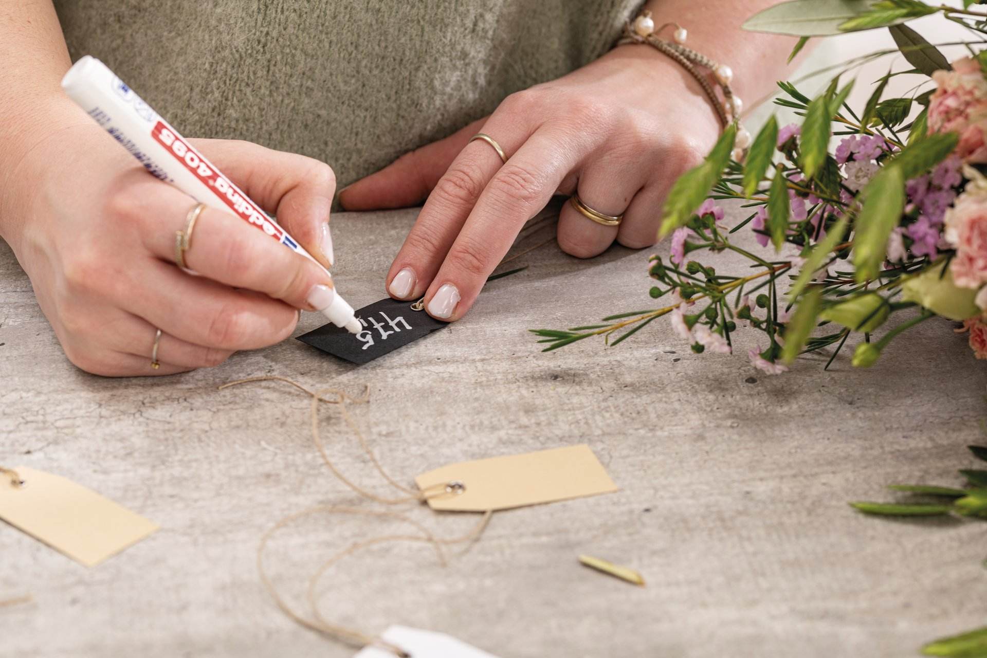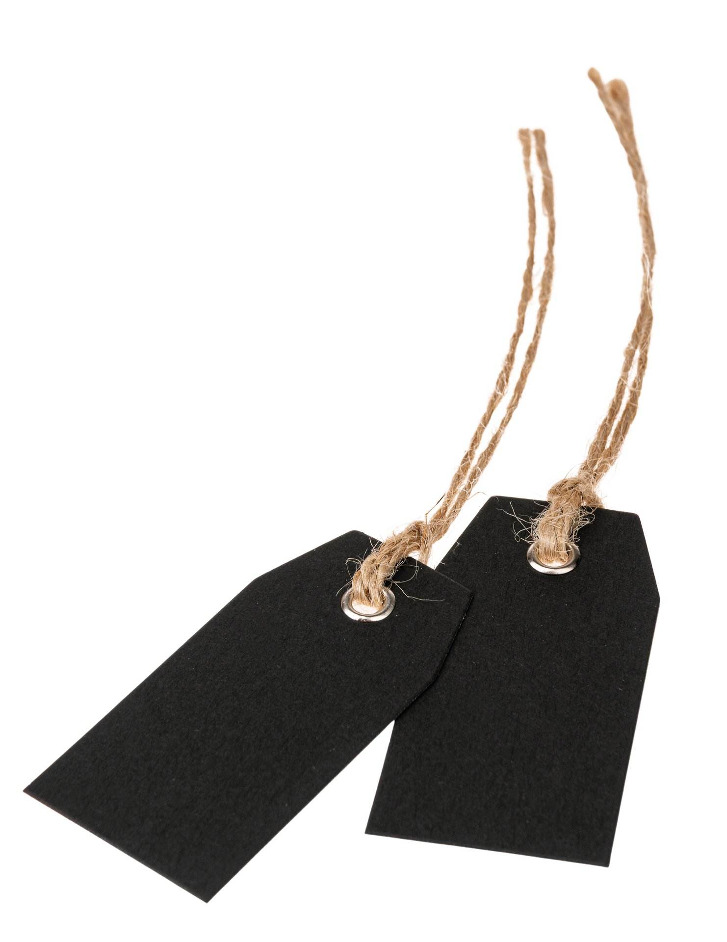 Etiketten aus Karton mit einer ca. 11 cm langen Schnur. Eine Öse verhindert schnelles Ausreißen.