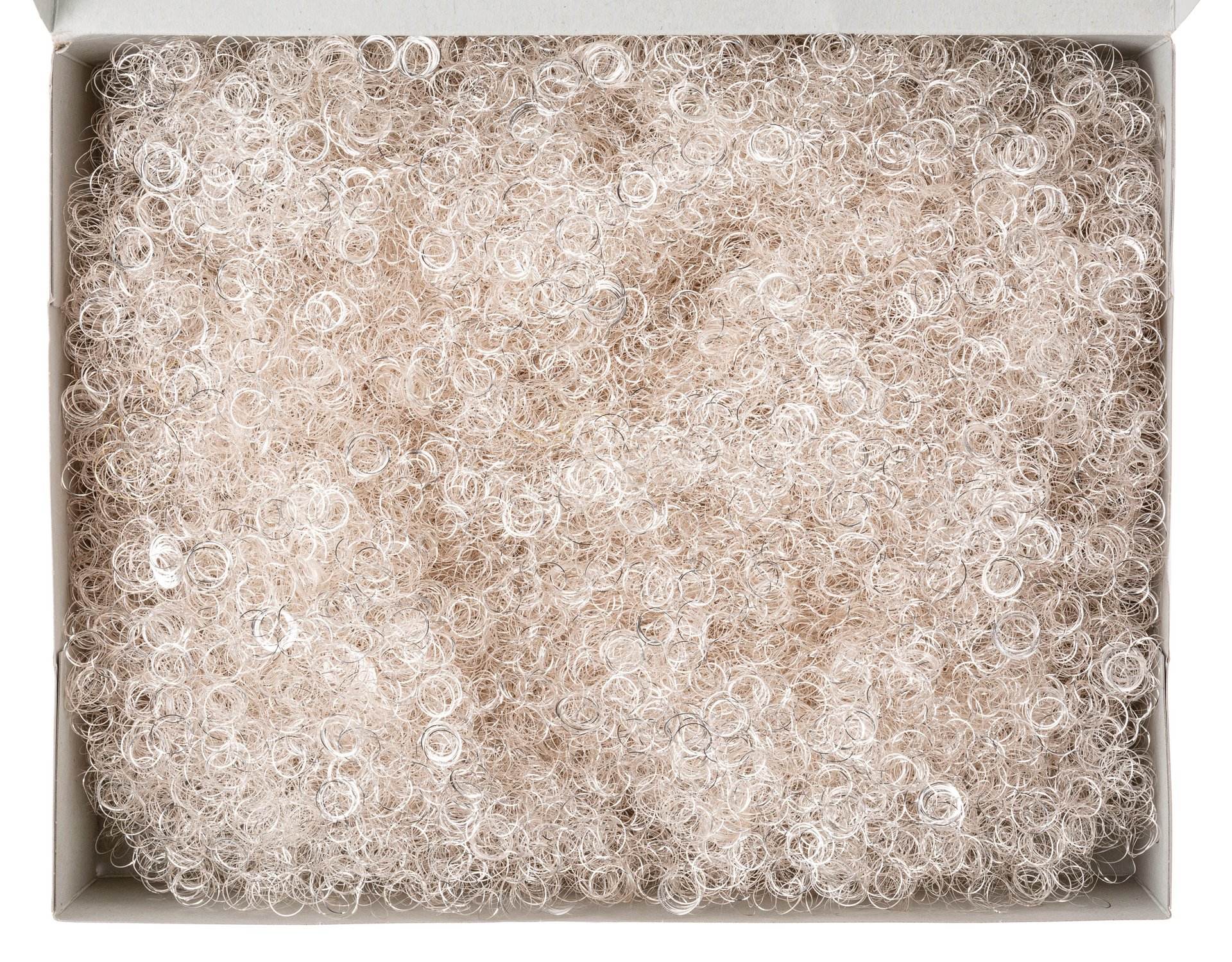Glänzendes, gelocktes Engelshaar. Grundmaterial aus 100% Kupfer bzw. Messingmetall. 200 g pro Kartonbox mit biologisch abbaubarem Sichtfenster.