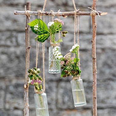 Sommerblumen mit der natürlichen Rustikalität von Birkenästen.