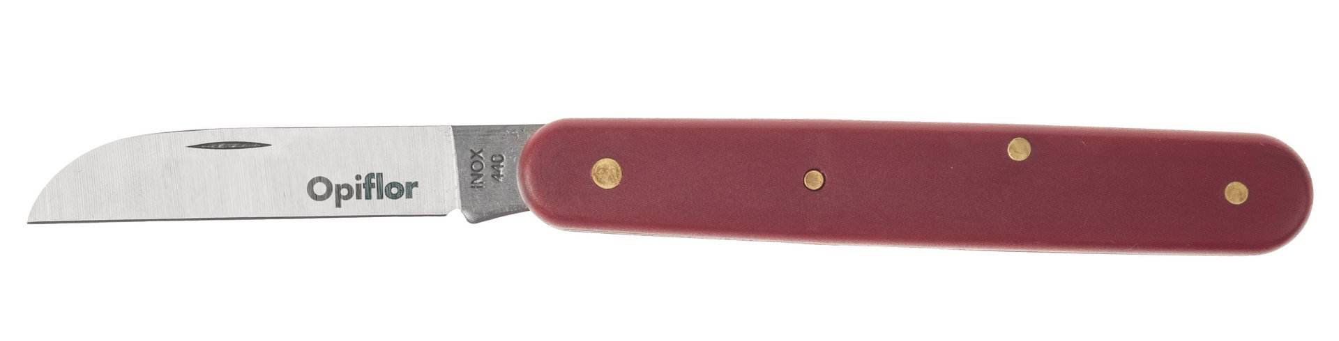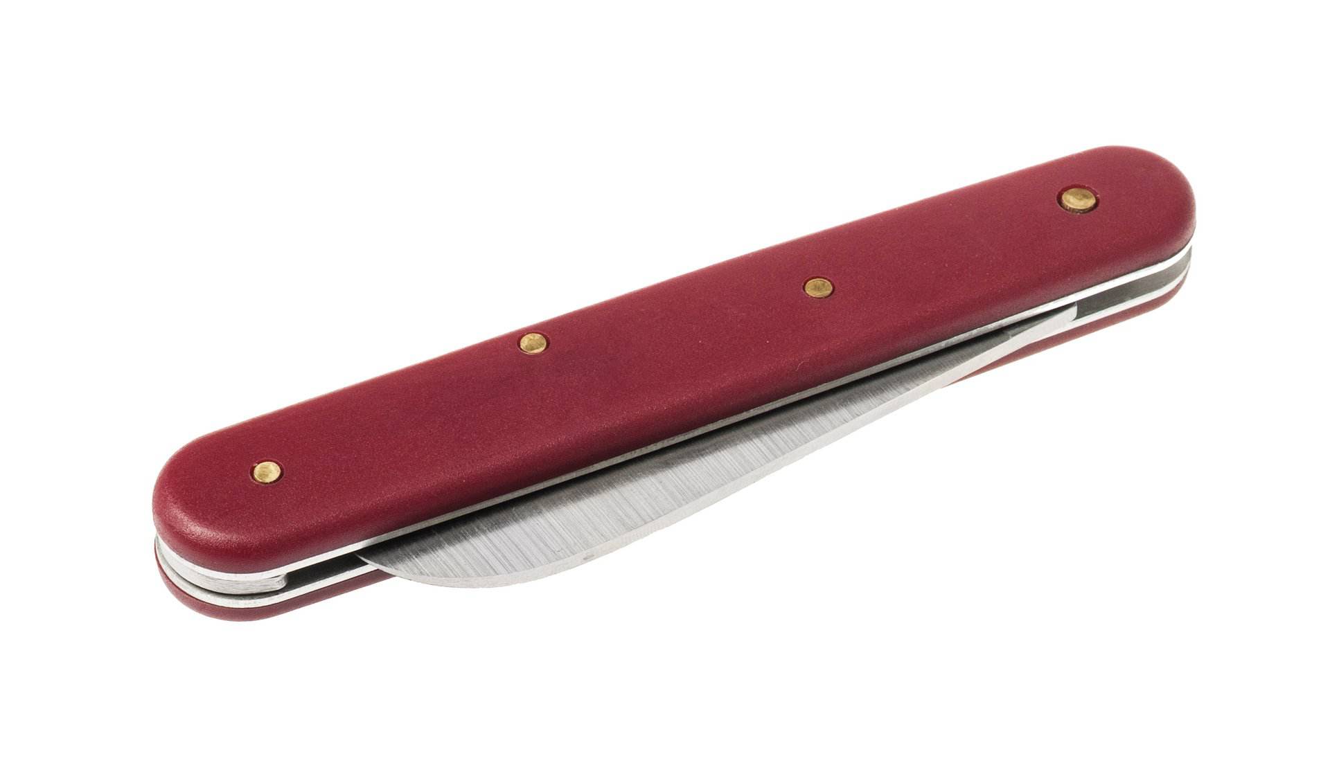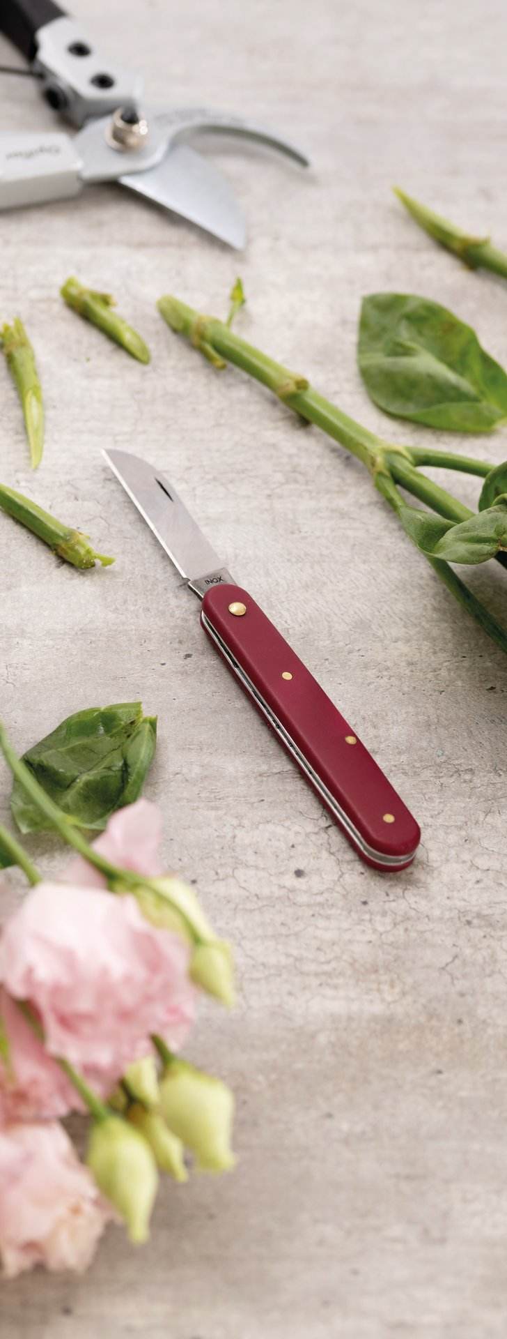 Klappbares Floristenmesser mit einer 5,5 cm langen Klinge aus rostfreiem, japanischen Kohlenstoffstahl und Kunststoffgriff.