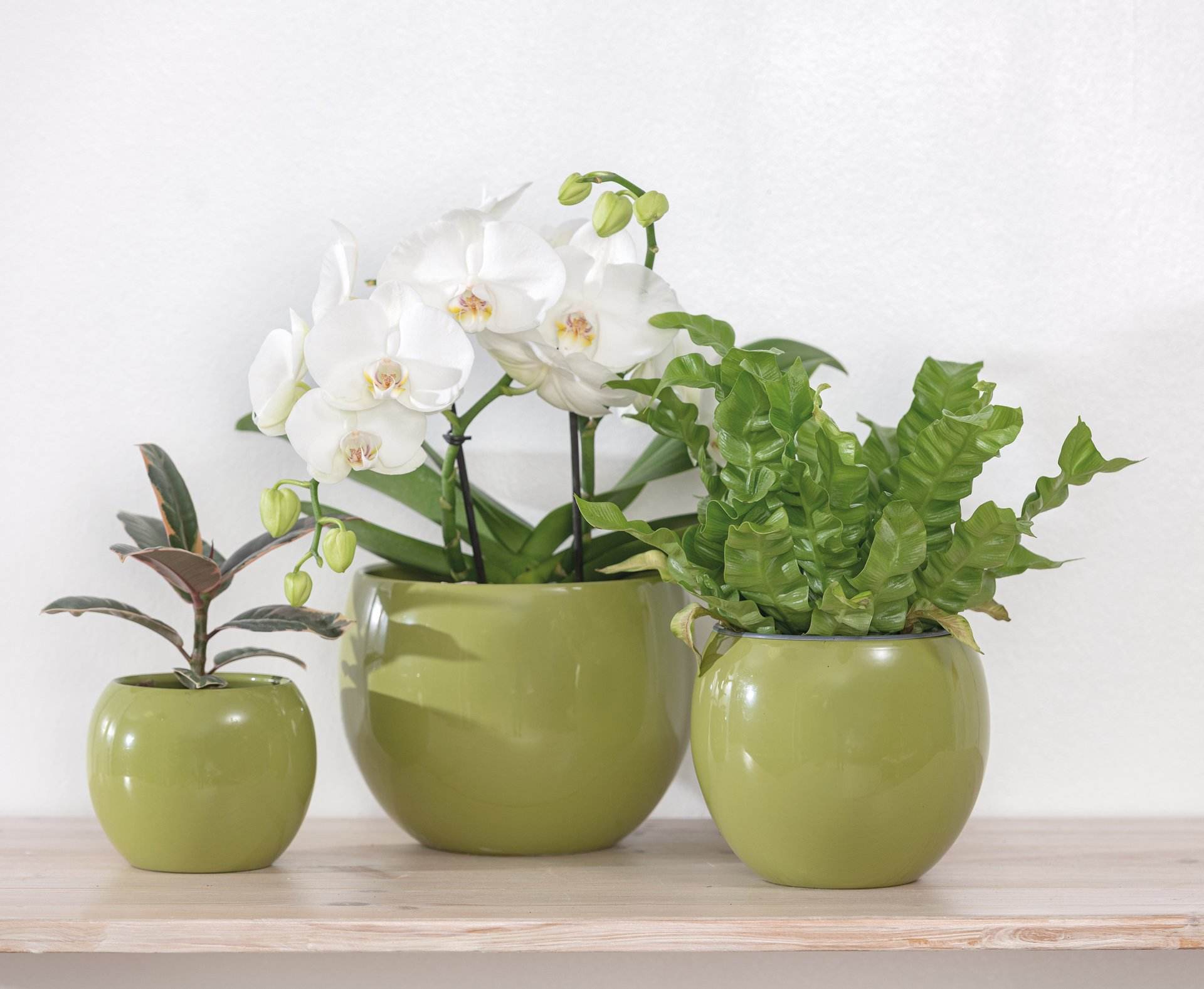 Matter Orchideentopf mit integriertem Keramiksteg gegen Staunässe.