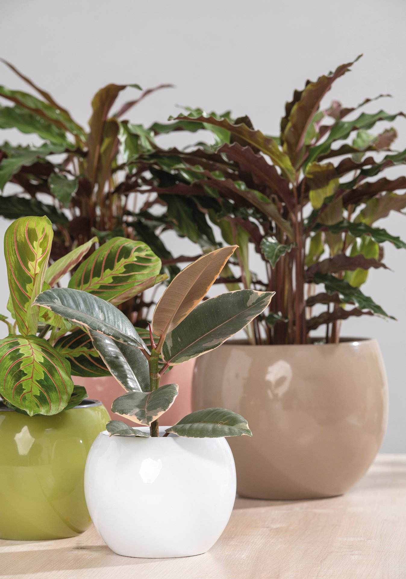 Glänzender Keramiktopf in Kugelform in verschiedenen Größen und Farben.