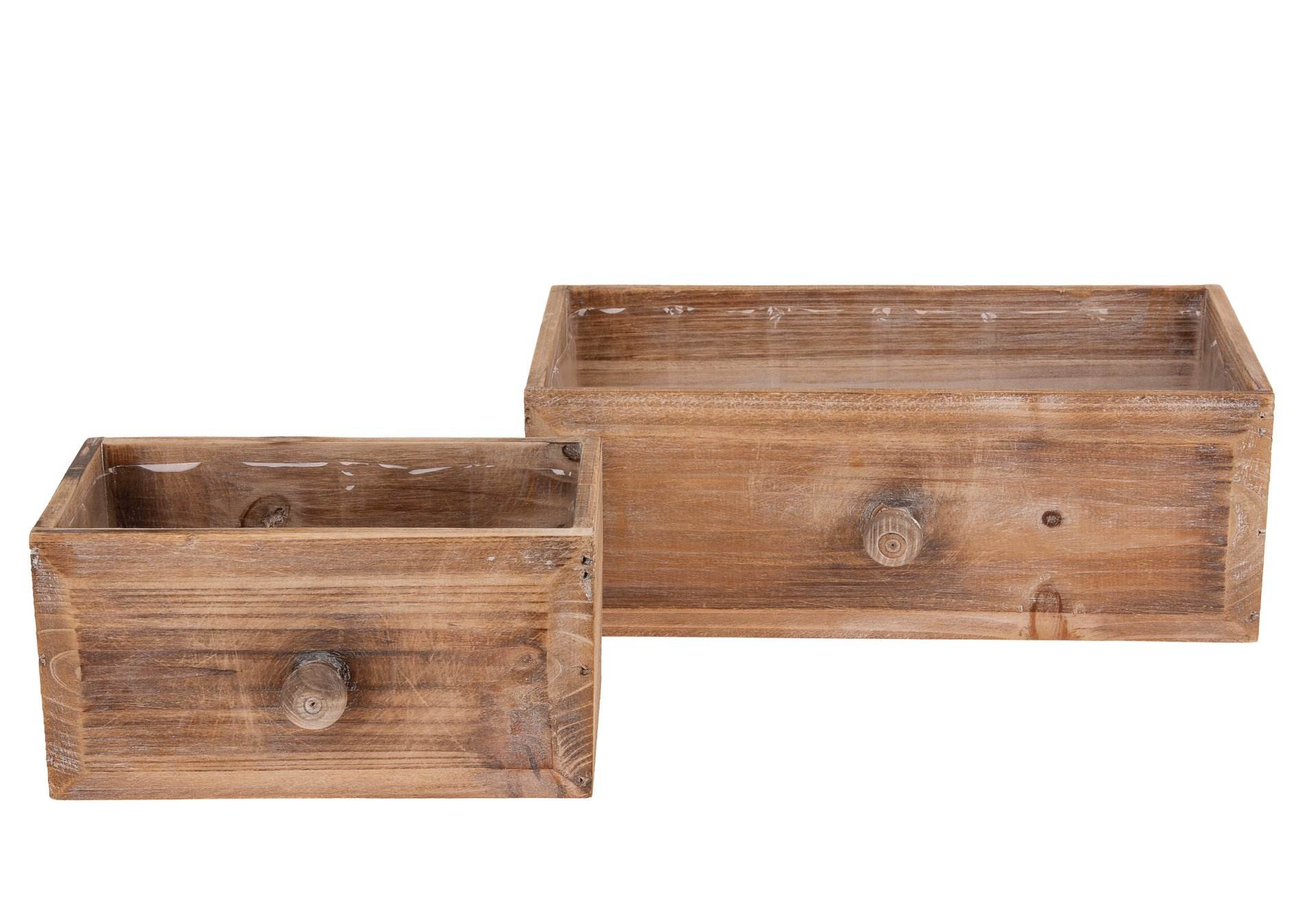 Rechteckige Schublade aus Holz mit Kunstoffeinsatz. 2er Set. Größen: 20 x 11 x 10,5 cm und 30 x 15 x 11 cm.