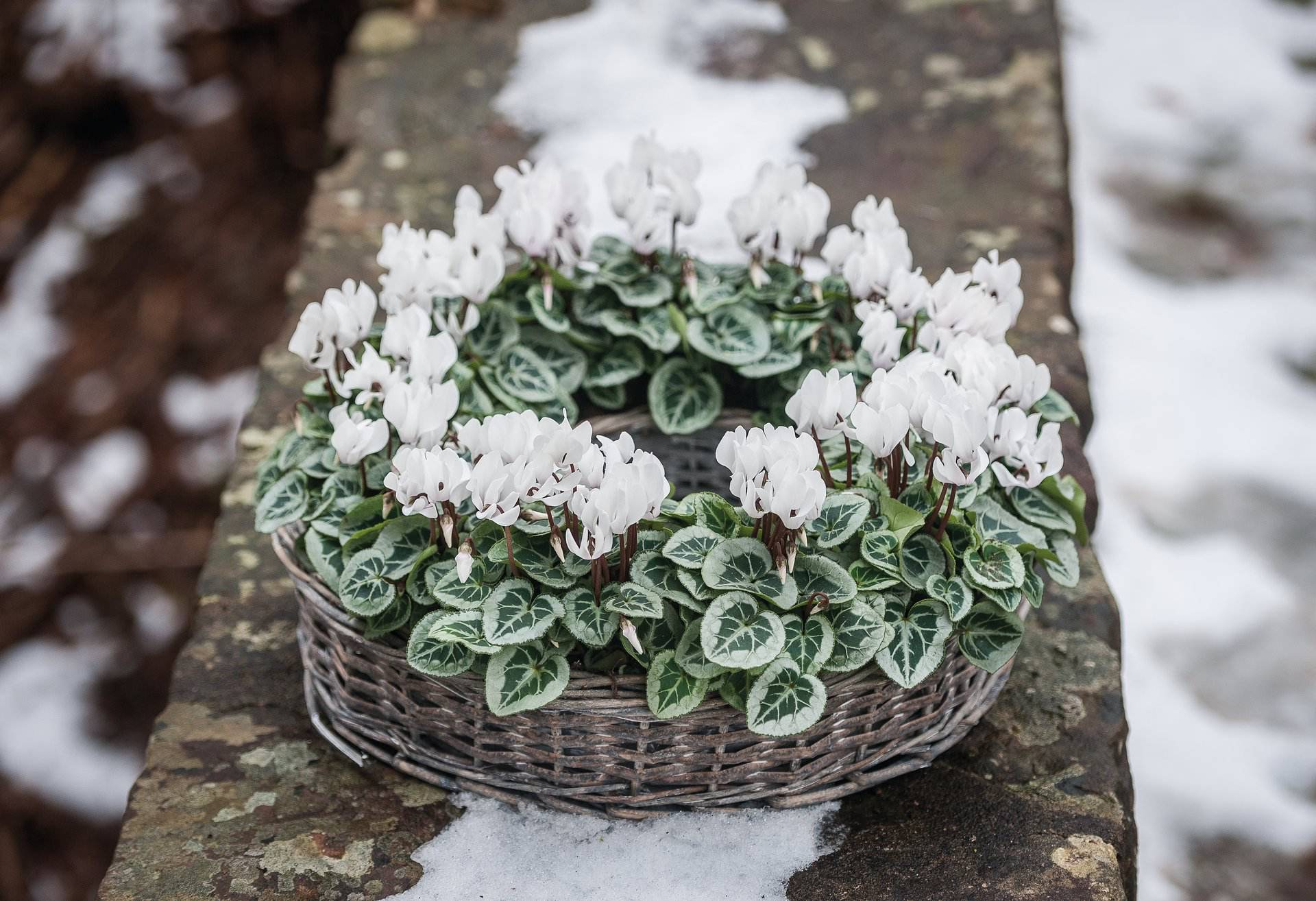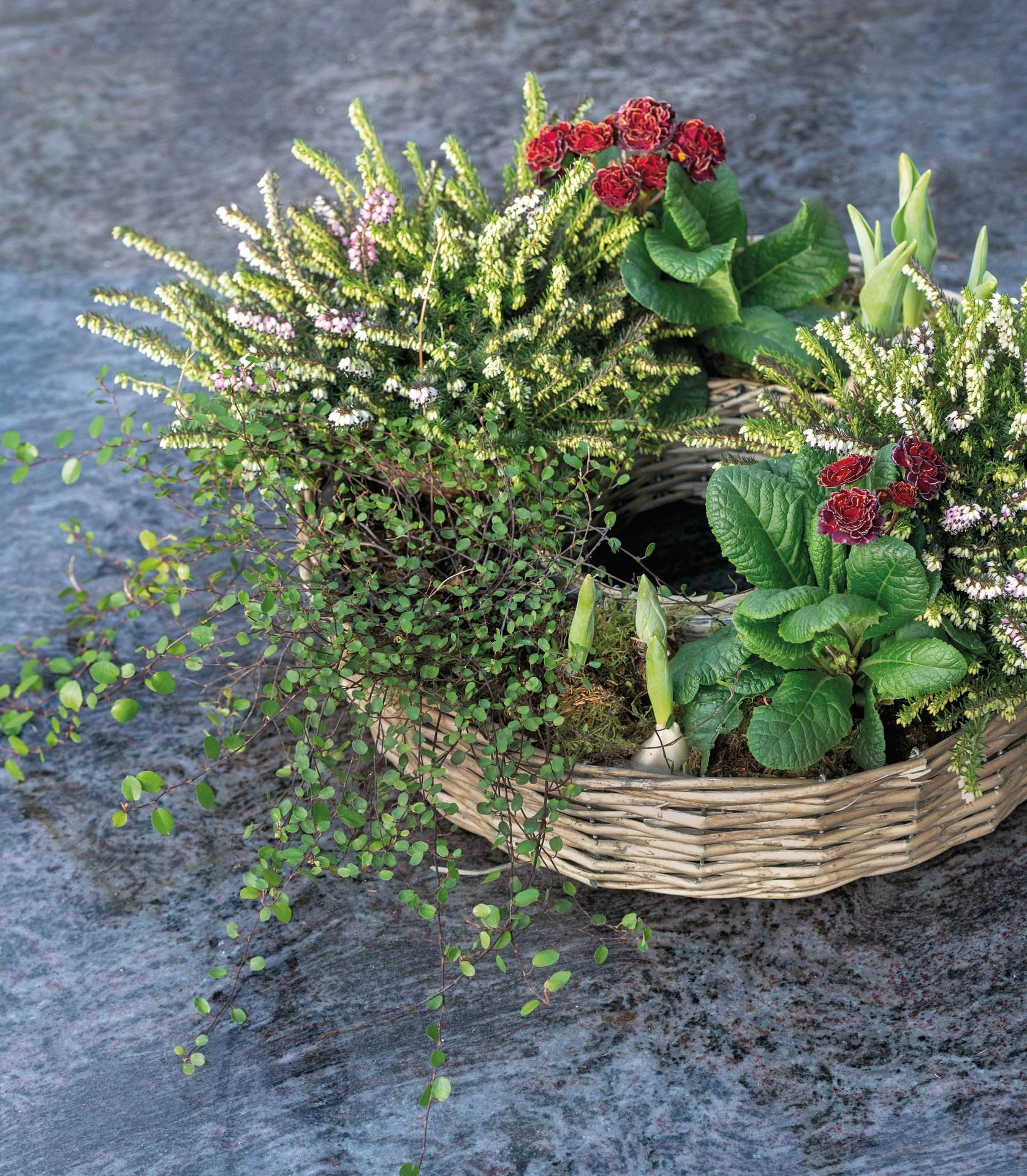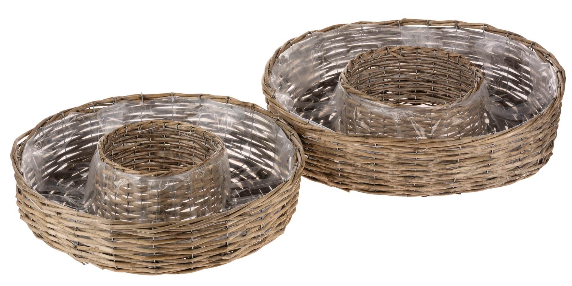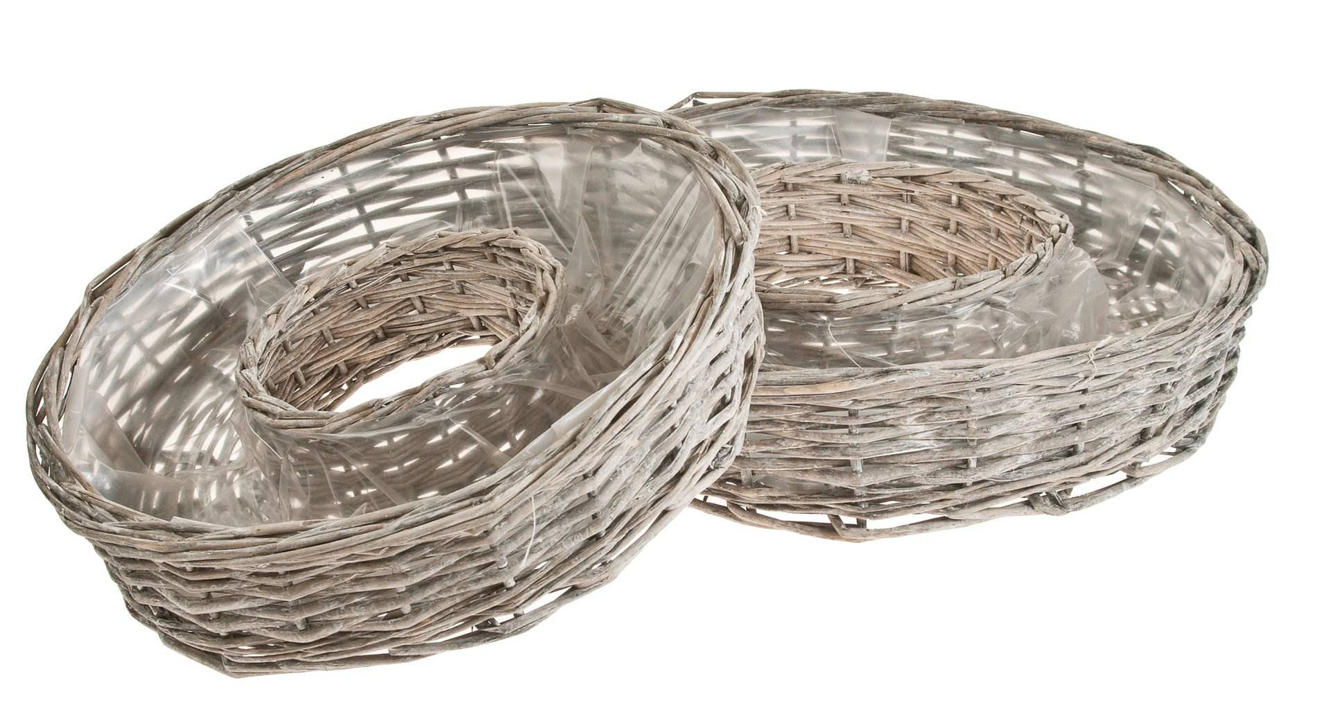 Pflanzringe aus grauer, gespaltener Weide in weiß gekalkt. Innen foliert. 2er Set.