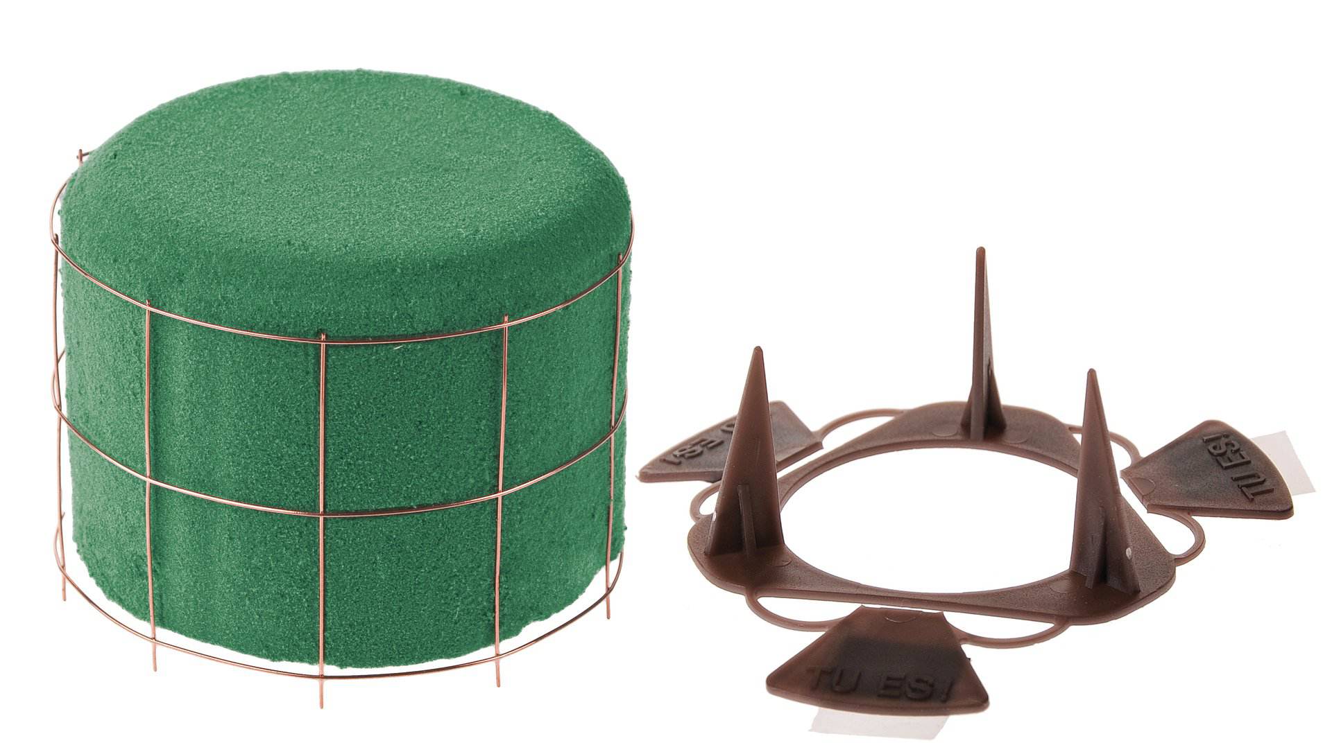 Nass-Steckschaumring/-kranz Ringo Leit auf einer wasserabweisenden,kompostierbaren Biodurunterlage. Innenmaße: N° 117051 Ø 8 cm,N° 117061 Ø 11 cm, N° 117071 Ø 19,5 cm, N° 117072 Ø 23 cm, N° 117081 Ø 27,5 cm,N° 117082 Ø 34 cm.