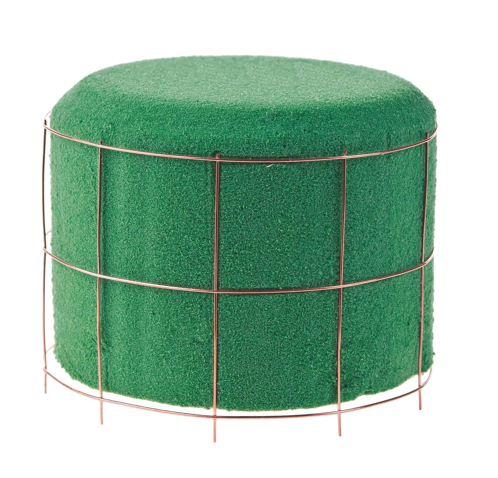 Bewährter und preisgünstiger Nass-Steckschaumziegel in 1/2 Größe, ummantelt mit Gitterdraht und auf einer Holzunterlage mit praktischer Kante zum einfachen Greifen.