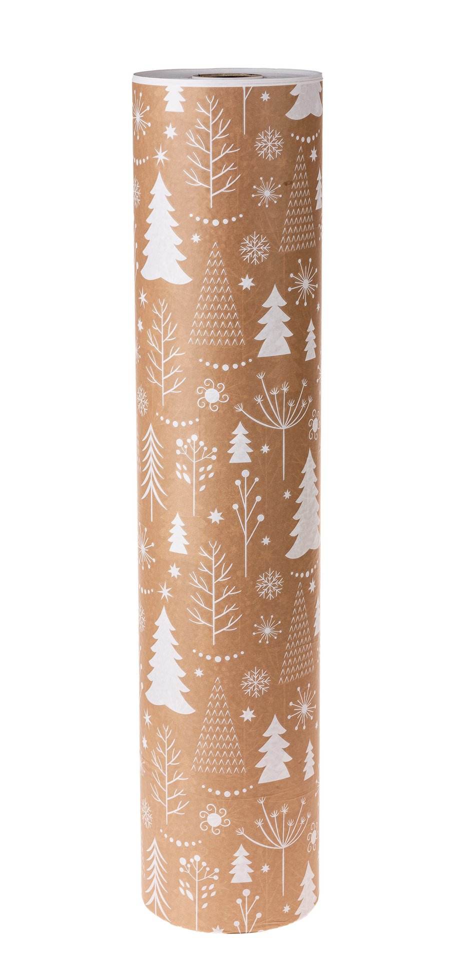 Blumenseide aus 35g/m² Papier in nassverfestigter Qualität. Motiv: Bäume, Schneeflocken und Girlanden.