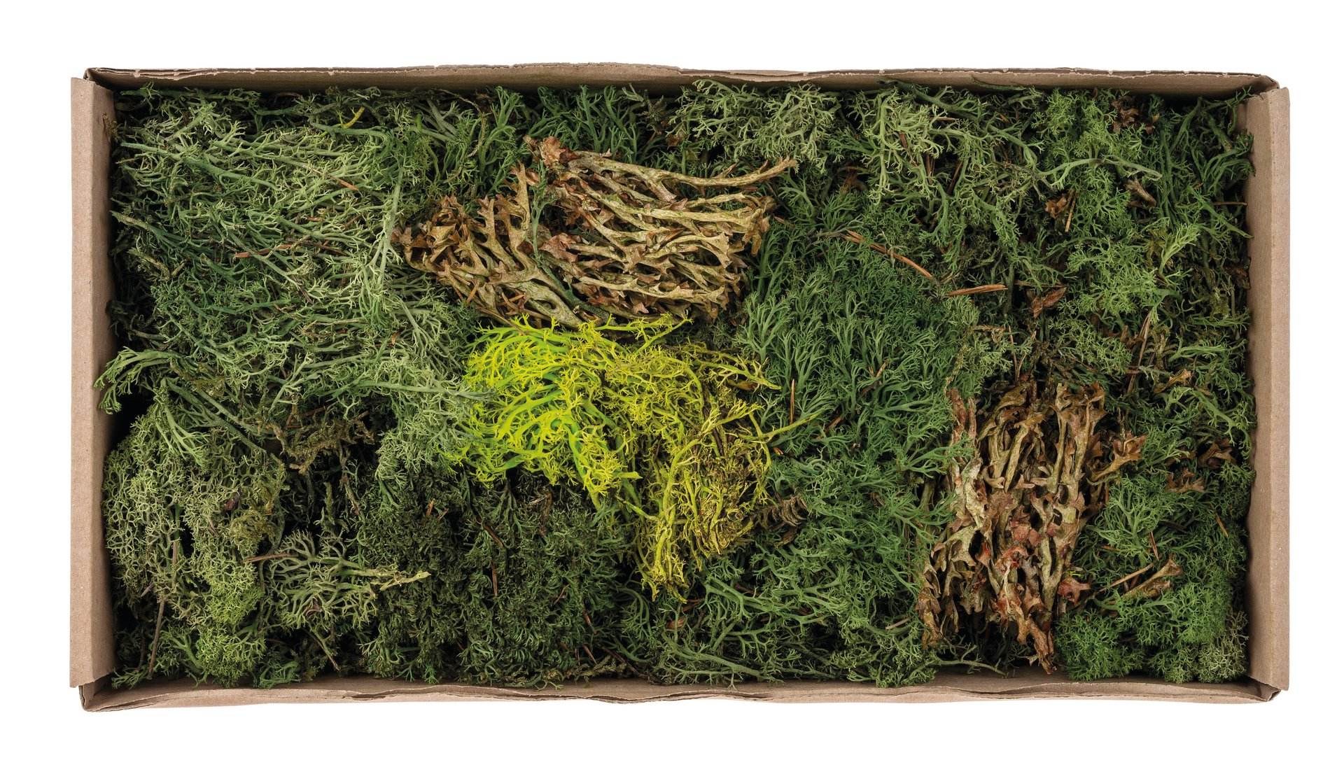Mix in verschiedenen Natur- und Grüntönen. Enthält verschiedene Moosarten.