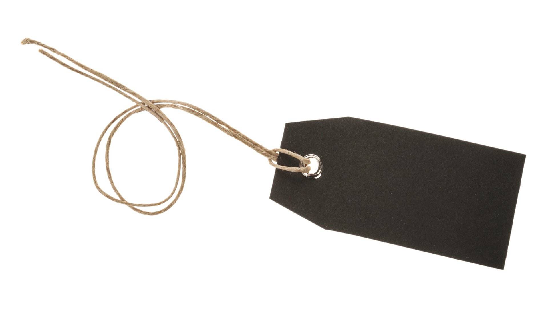 Etiketten aus Karton mit einer ca. 11 cm langen Schnur. Eine Öse verhindert schnelles Ausreißen.