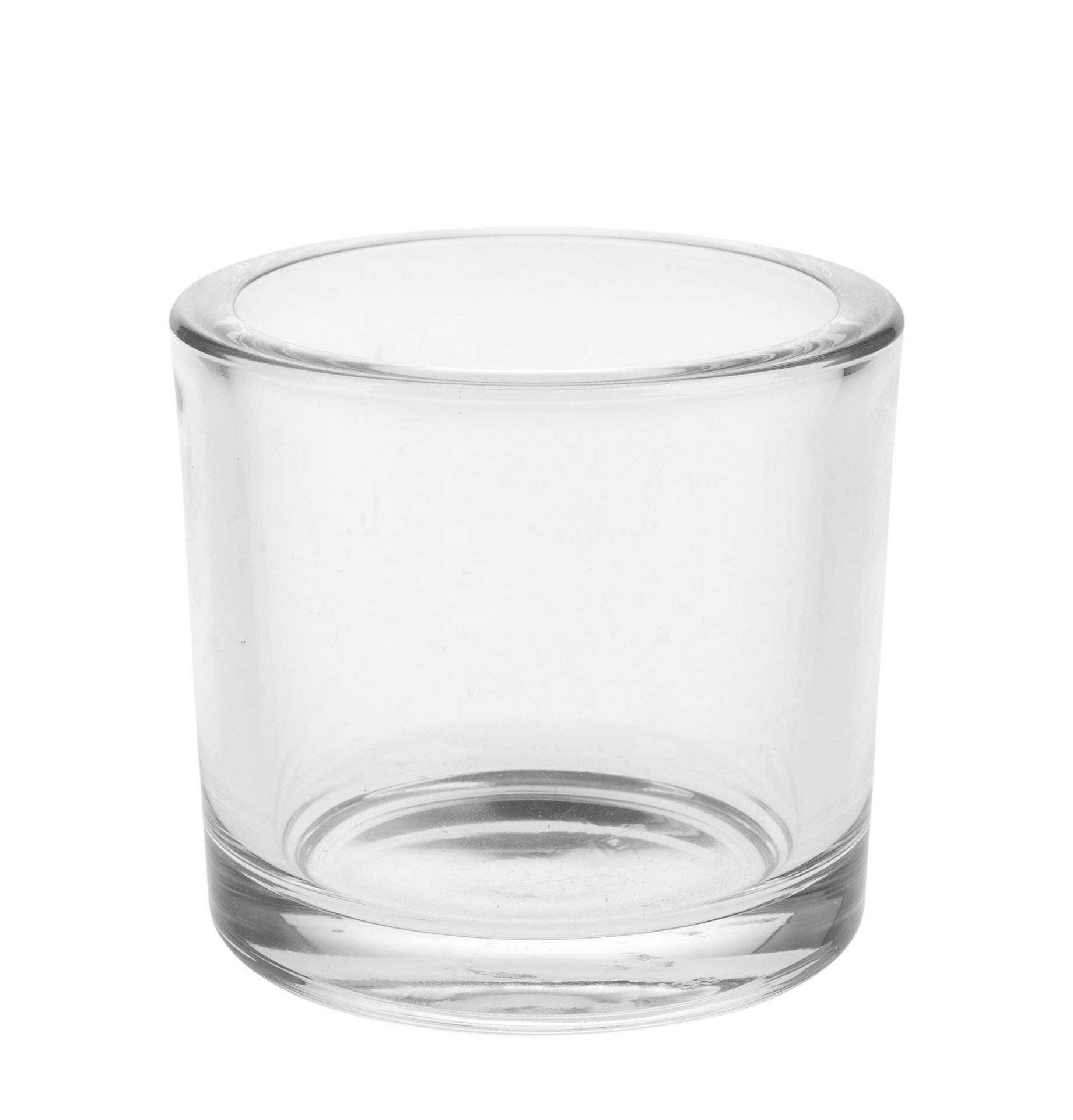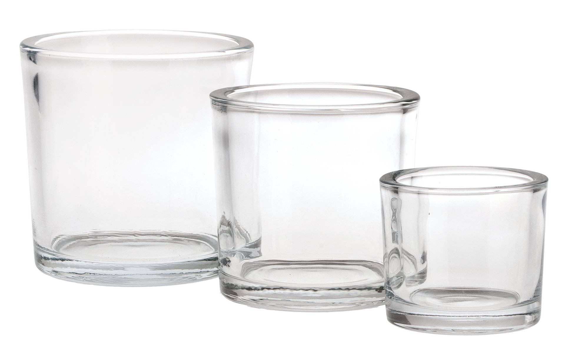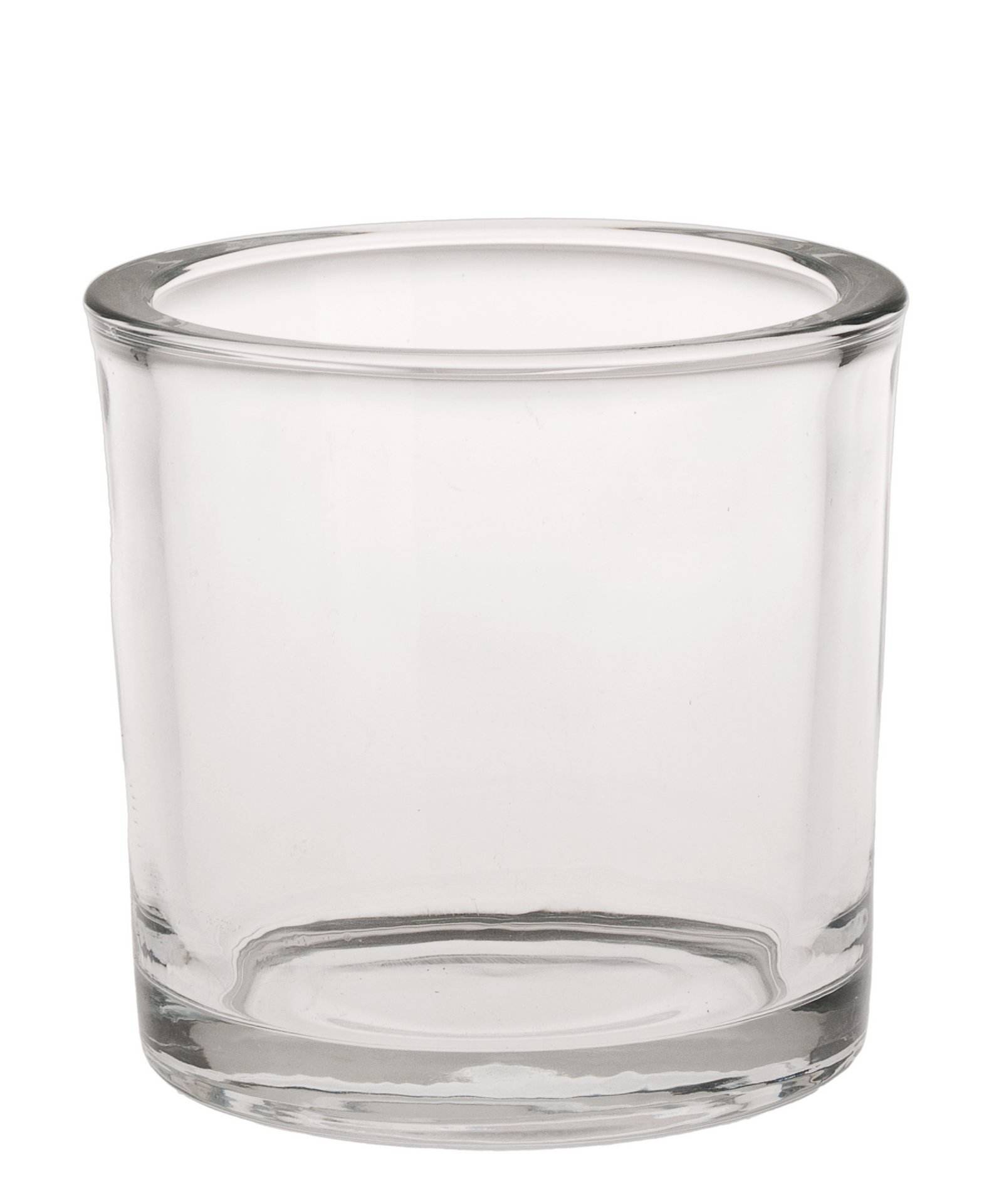 Geradliniger, runder Glastopf in schwerer Qualität.