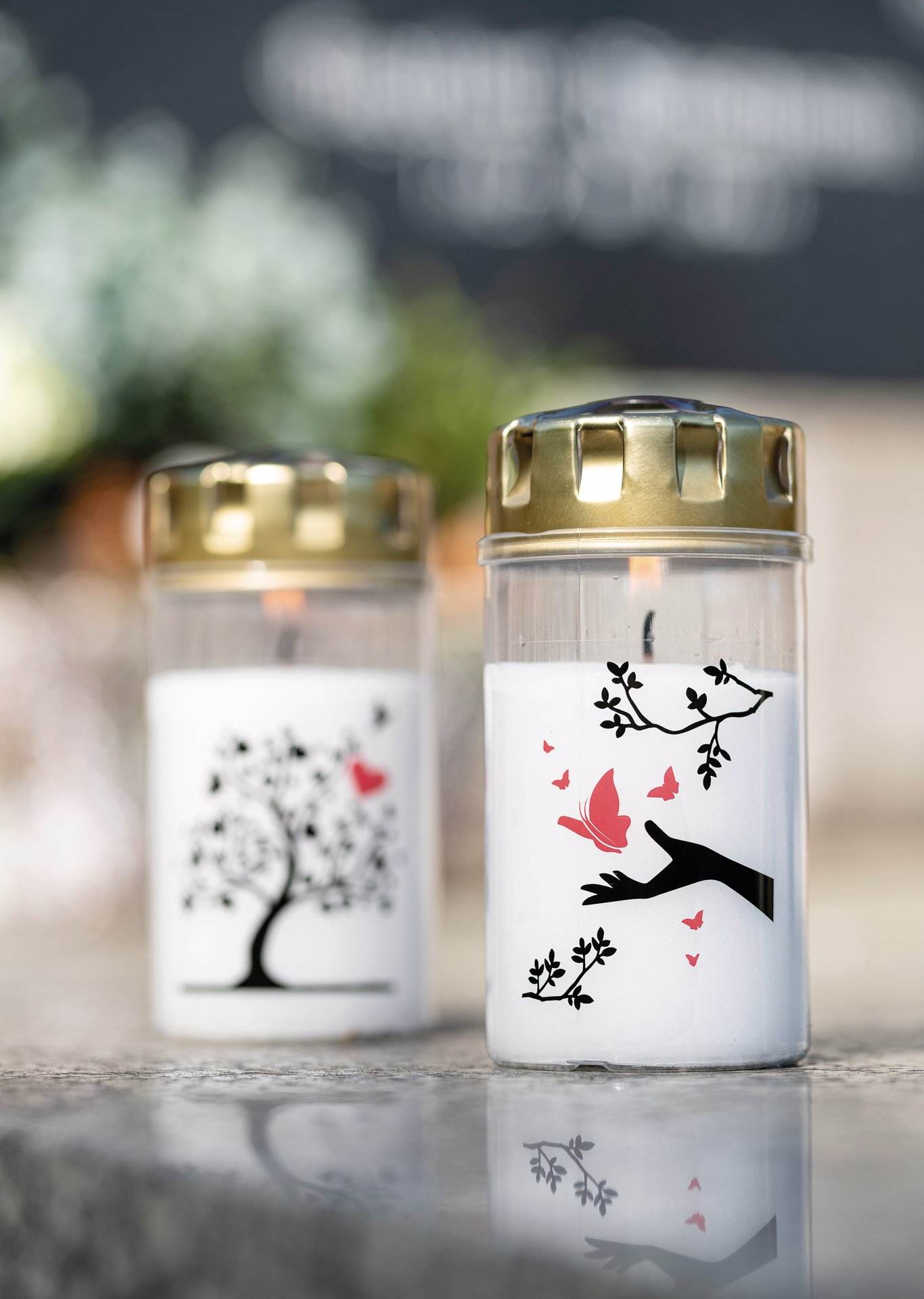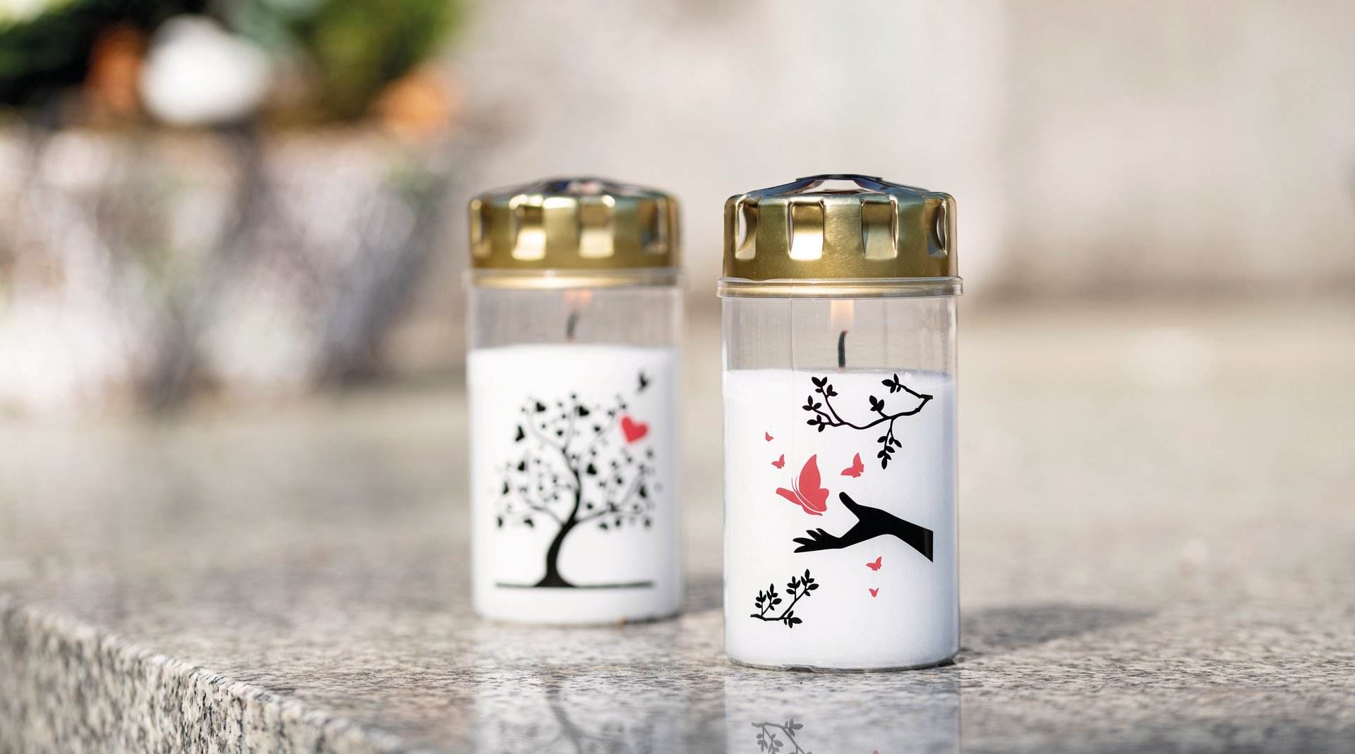 Grabkerzen mit Motiv