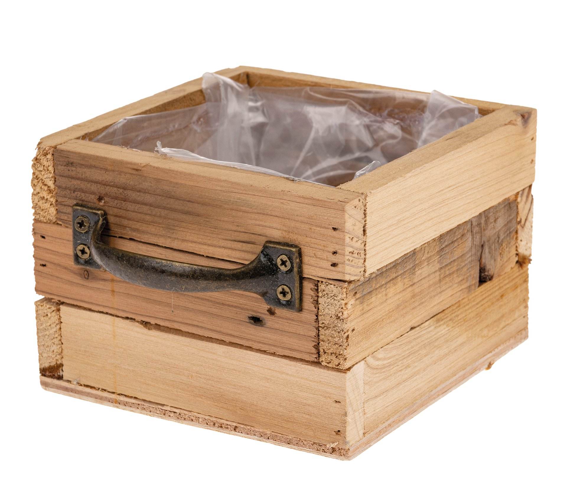 Quadratische Schublade zum Bepflanzen mit Griff. Innen foliert. Größe: 14 x 14 x 9,5 cm