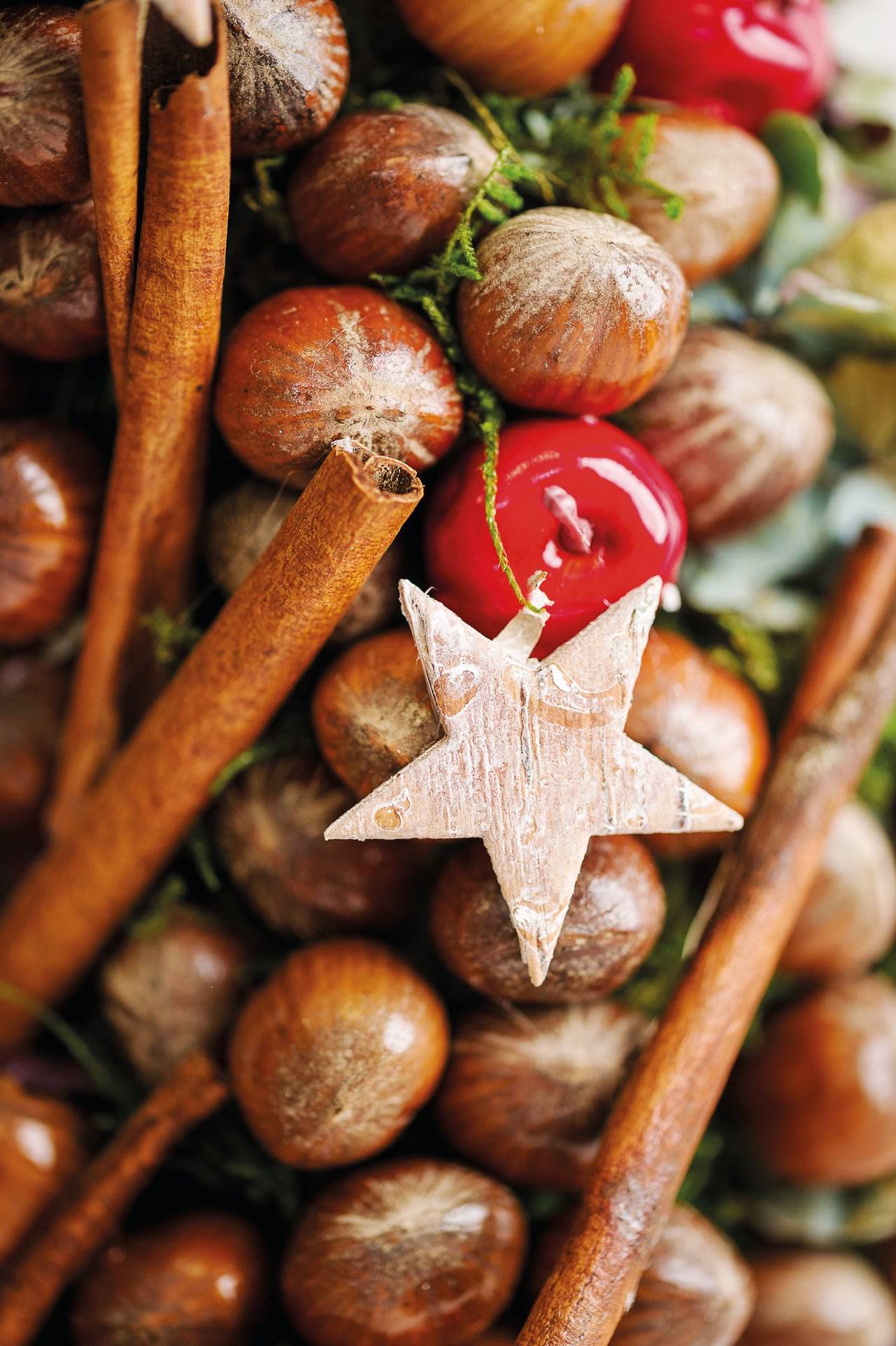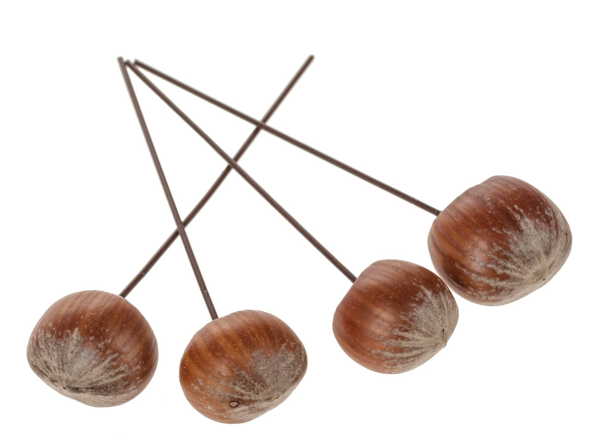 Natürliche Haselnuss am Drahtpick. Nicht zum Verzehr geeignet.