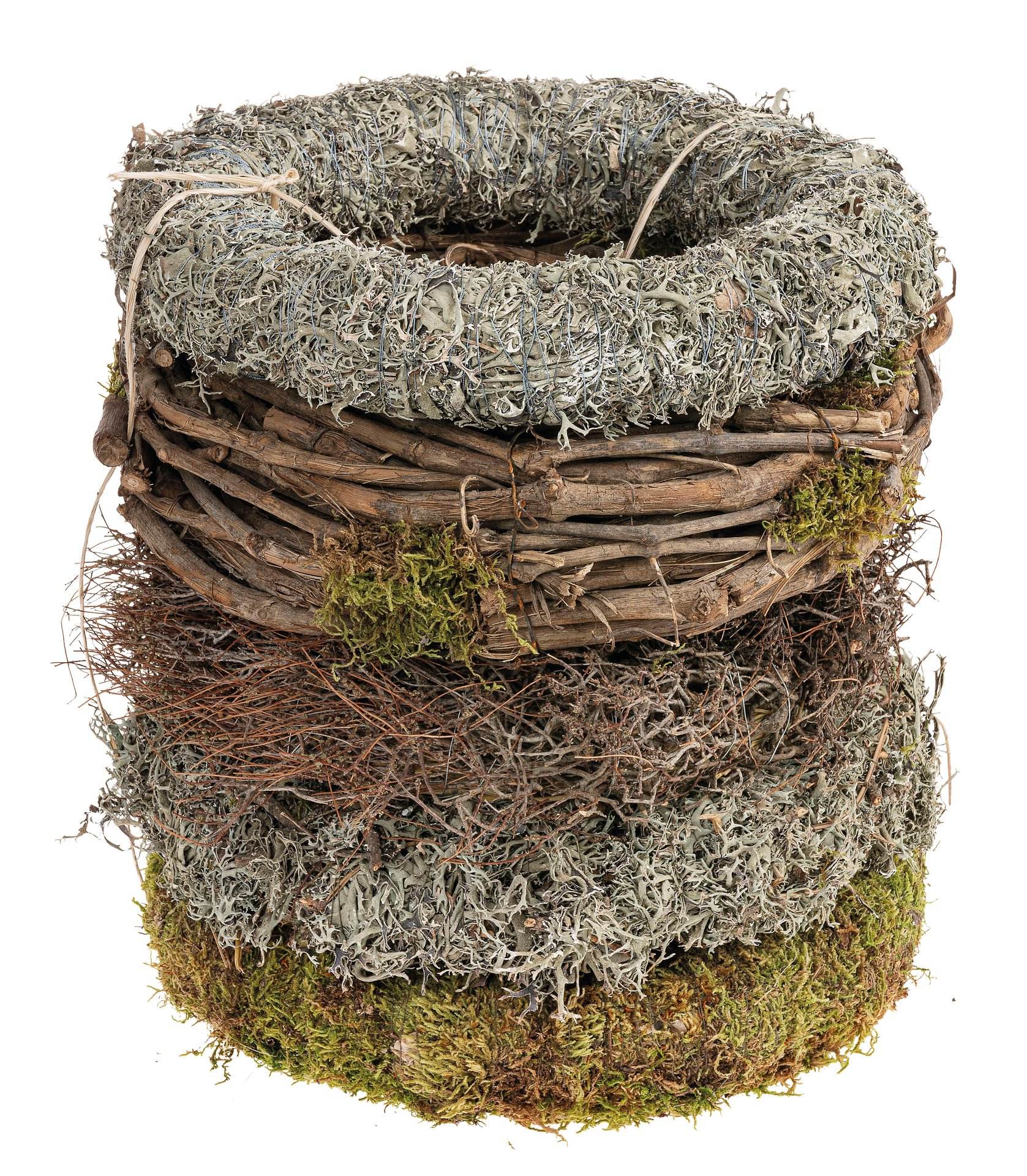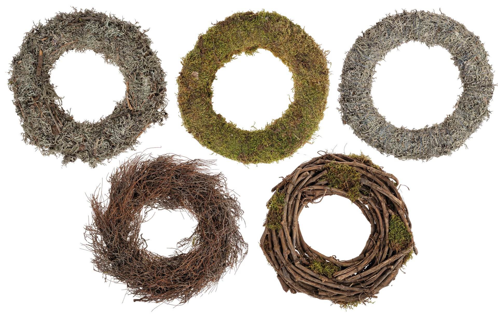Fünf verschiedene Kränze zum Bestecken und Dekorieren.