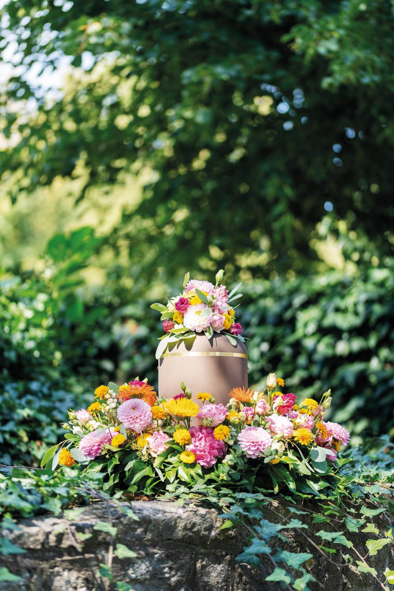 Nass-Steckschaumherz mit Drainage auf stabiler, verrottbarer Holzunterlage, zum Stellen.