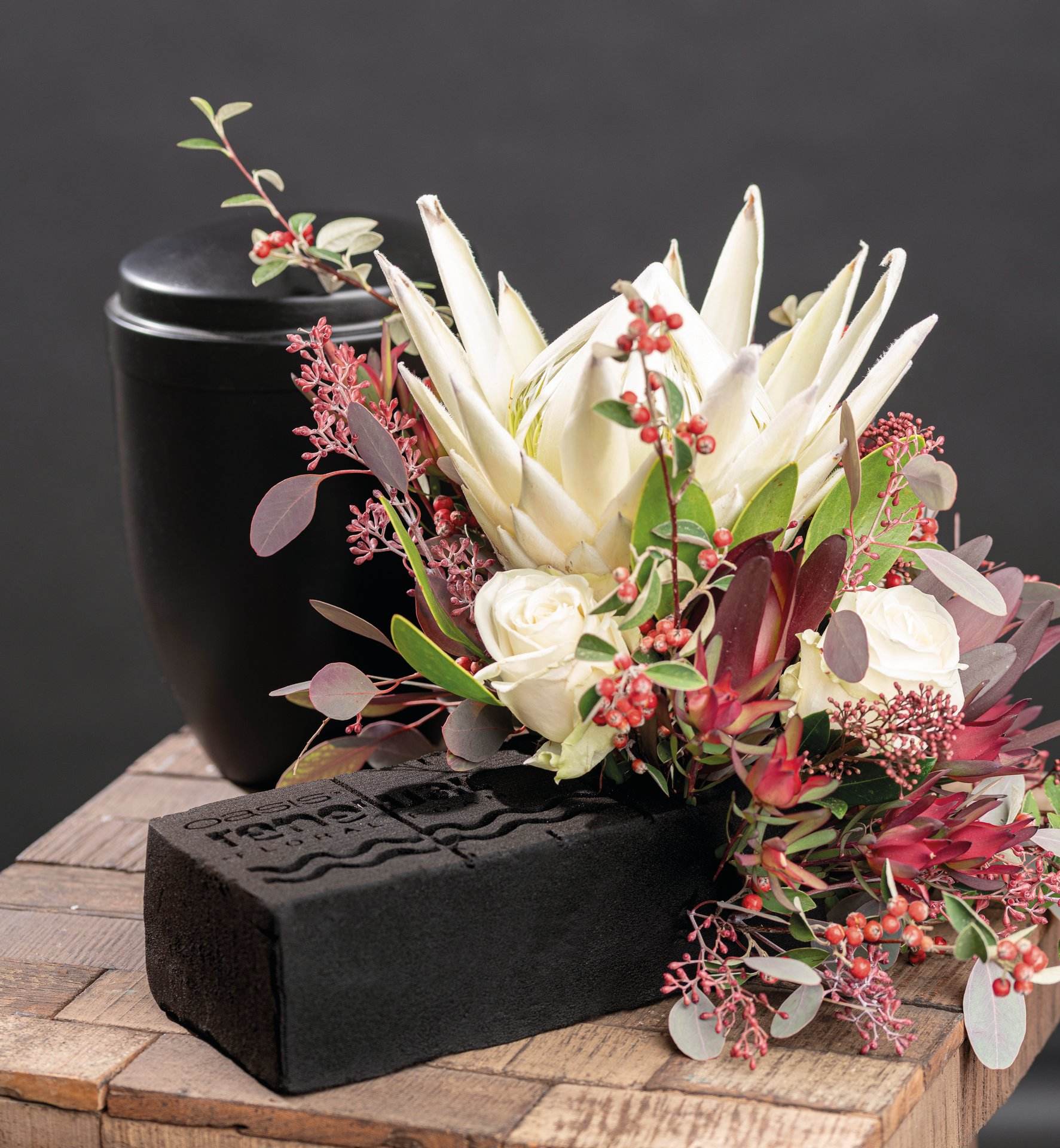 OASIS® Blumensteckschaum, der aus erneuerbaren, biobasierten Inhaltsstoffen besteht. Er eignet sich für alle Arten von Gestecken und Blumen.