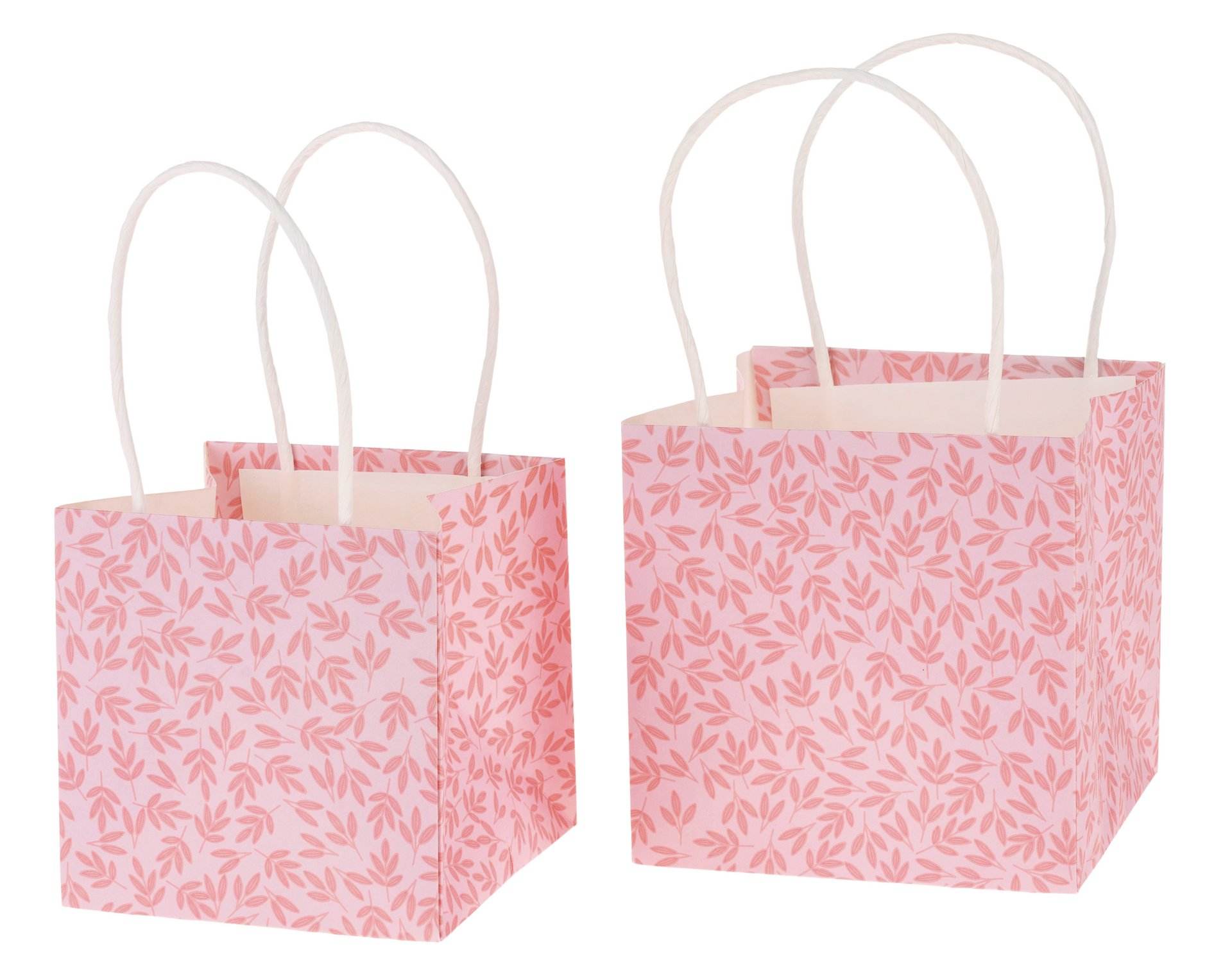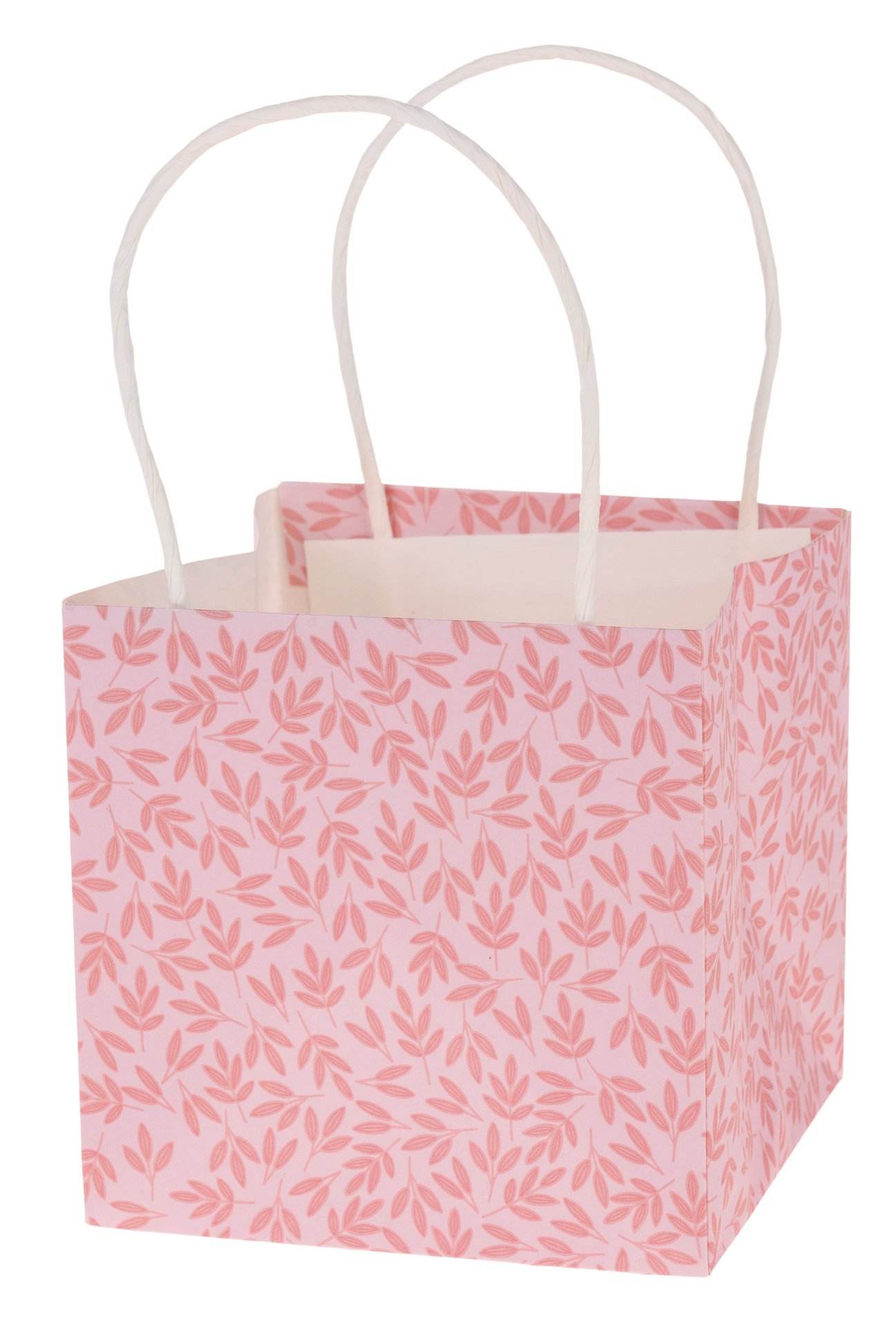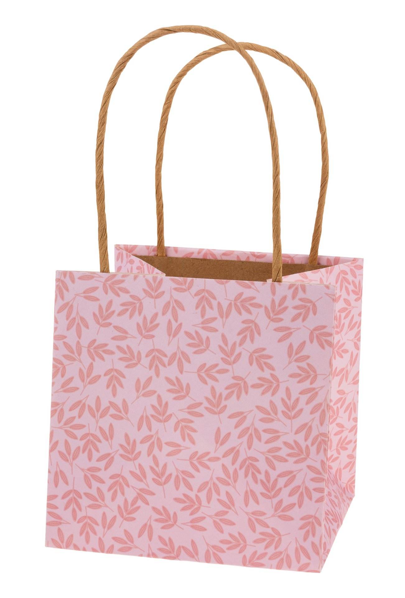 Tasche aus Kraftpapier mit Henkeln und Blättermotiv. Innen foliert.