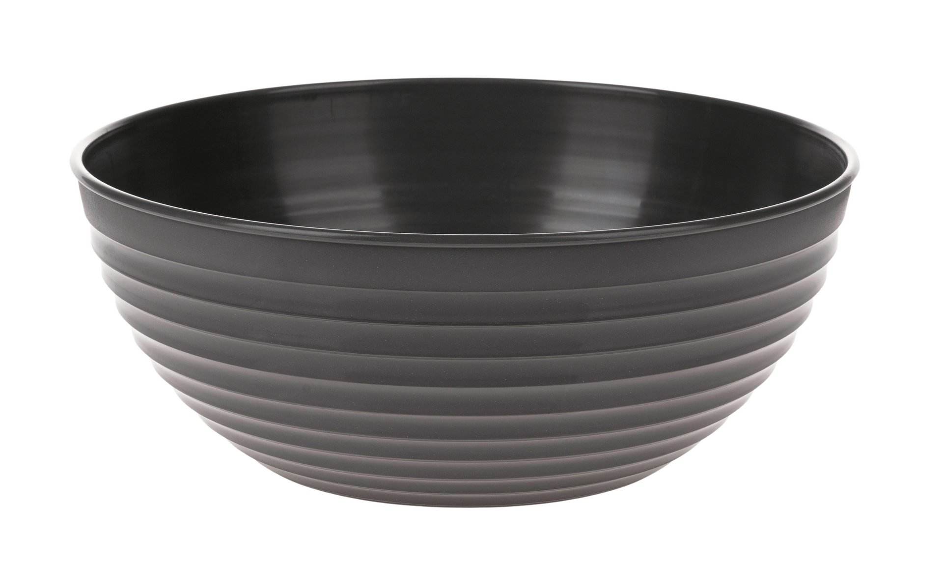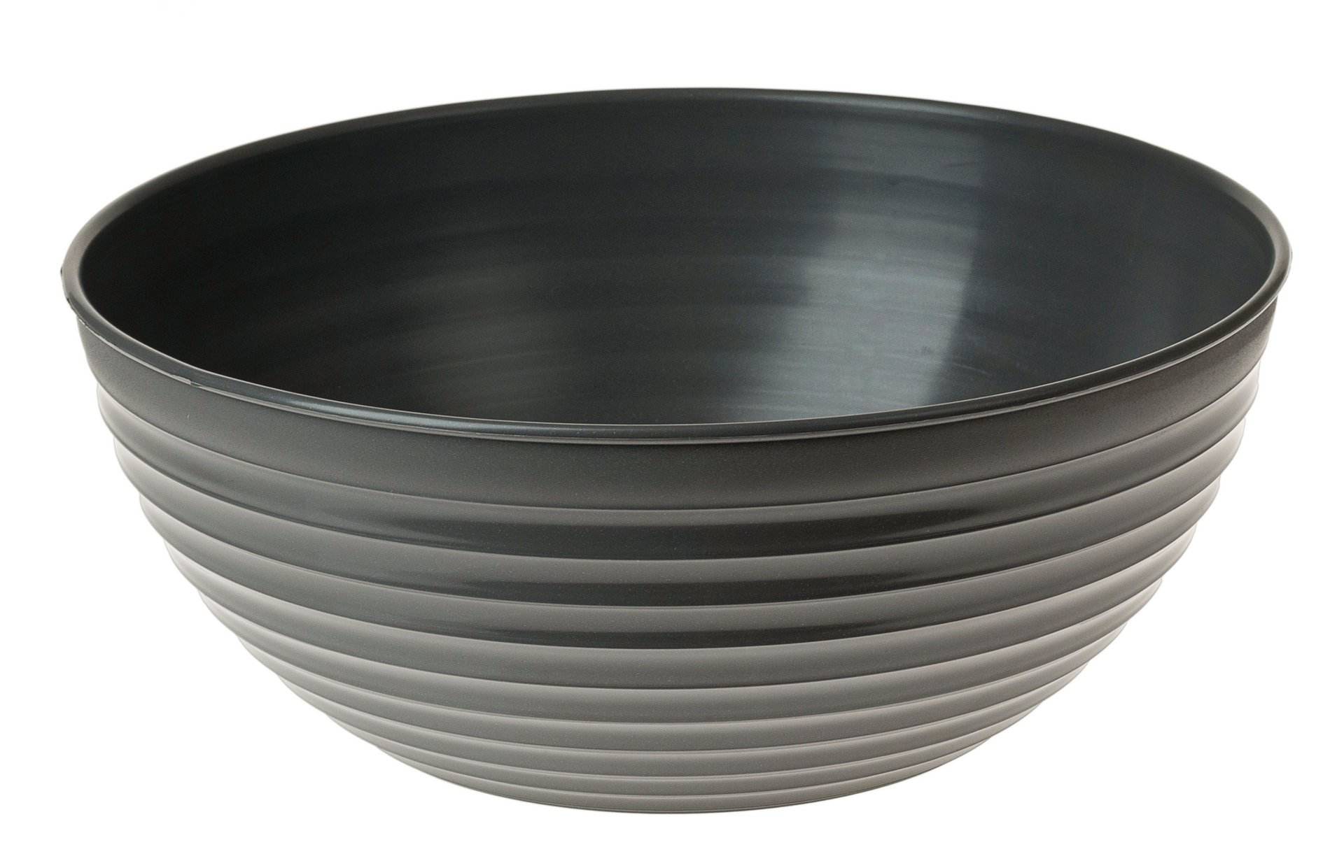 Frostsichere, runde Pflanzschale aus 100 % recyceltem Kunststoff. Aus dem Boden können bei Bedarf drei vorgestanzte Löcher ausgebrochen werden.