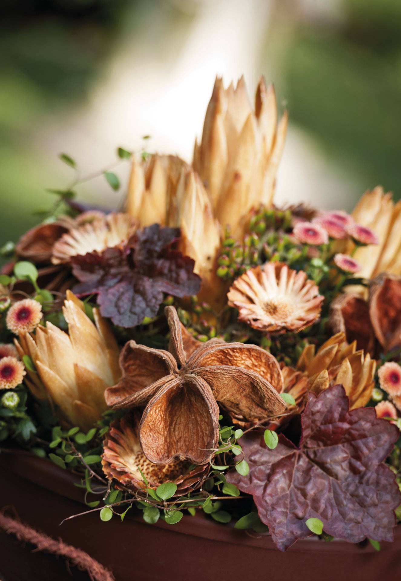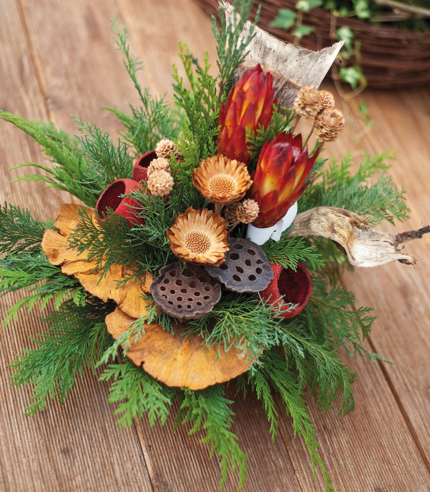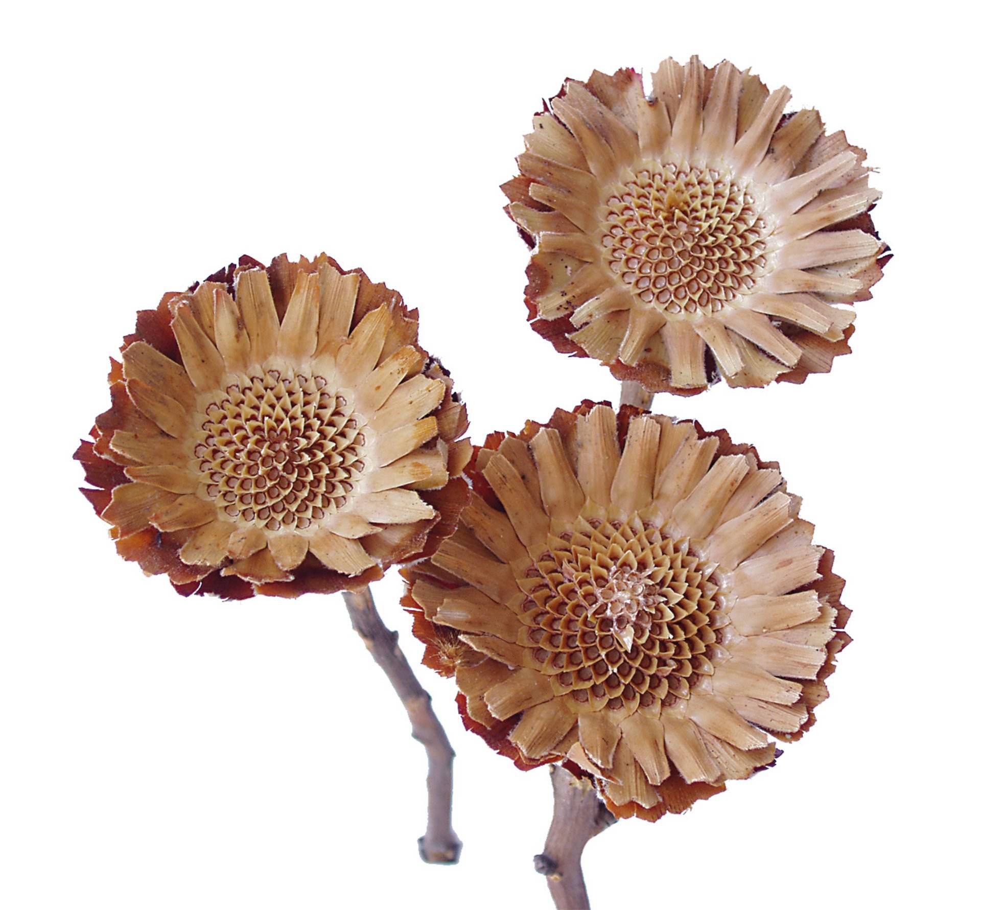Protea-Rosette mit Stiel. Bei Naturmaterialien können Größen abweichen.