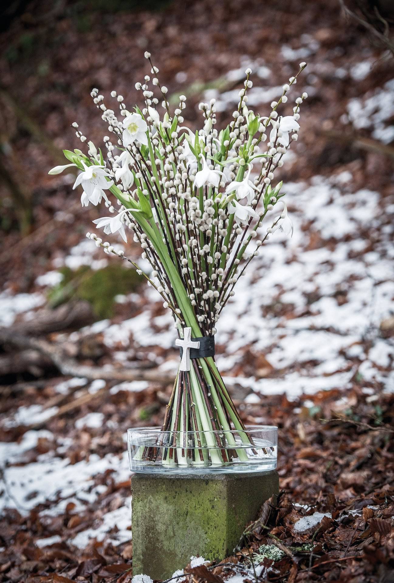 Kerzenteller aus beschichtetem Metall für Stumpenkerzen mit zwei Pins für eine stabile Stellfläche in Kränzen oder Gestecken.