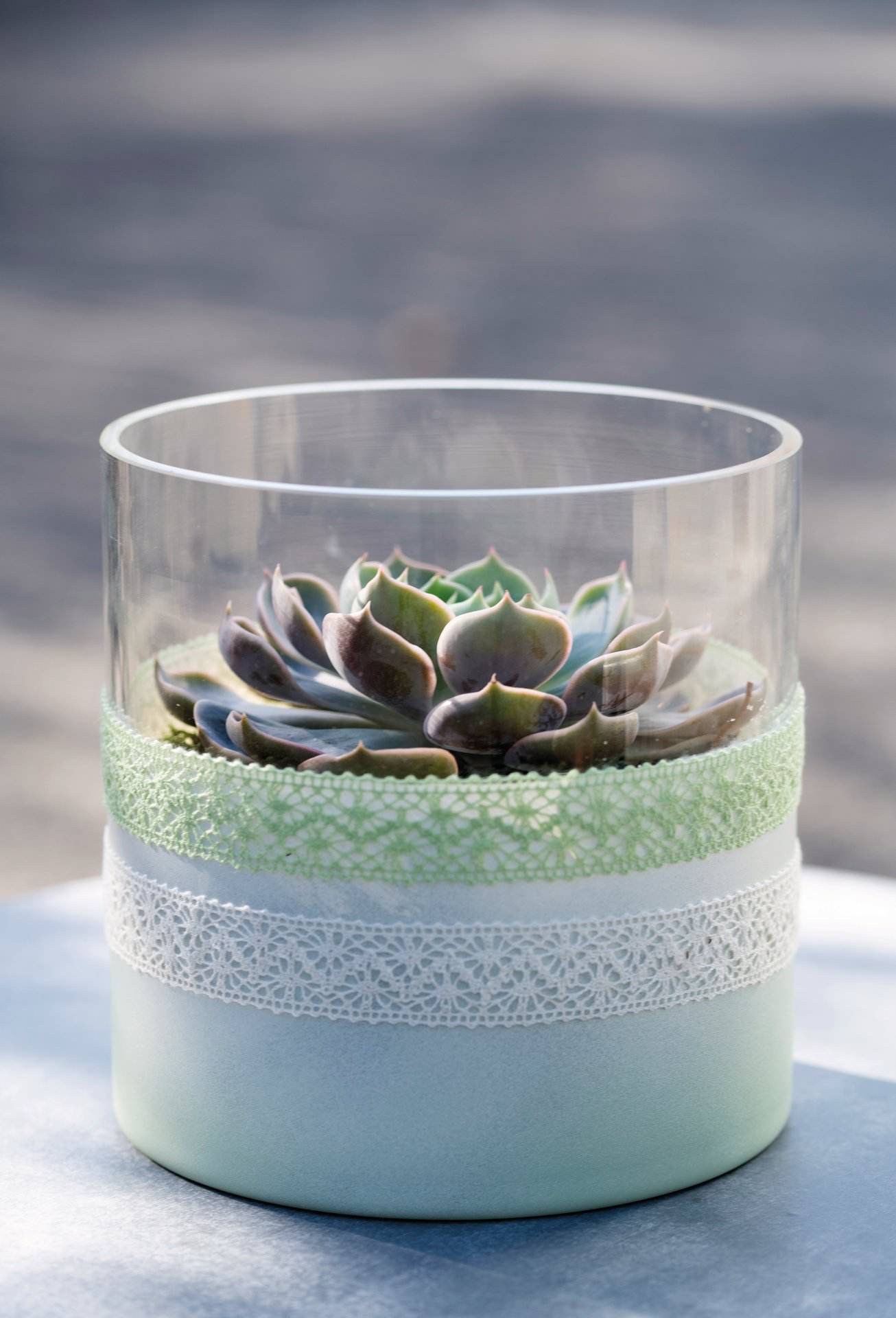 Lackierter Zinktopf mit Ornamentrelief. 3-farbig sortiert = 8 Stück je Farbe.