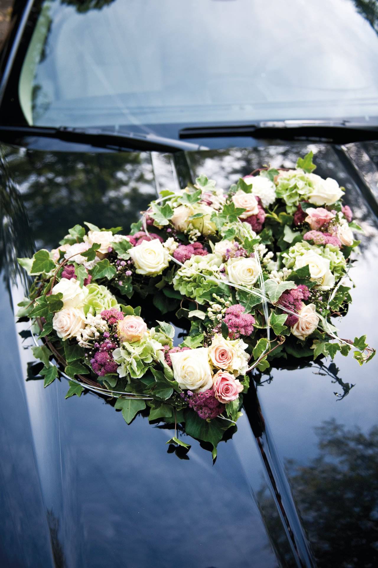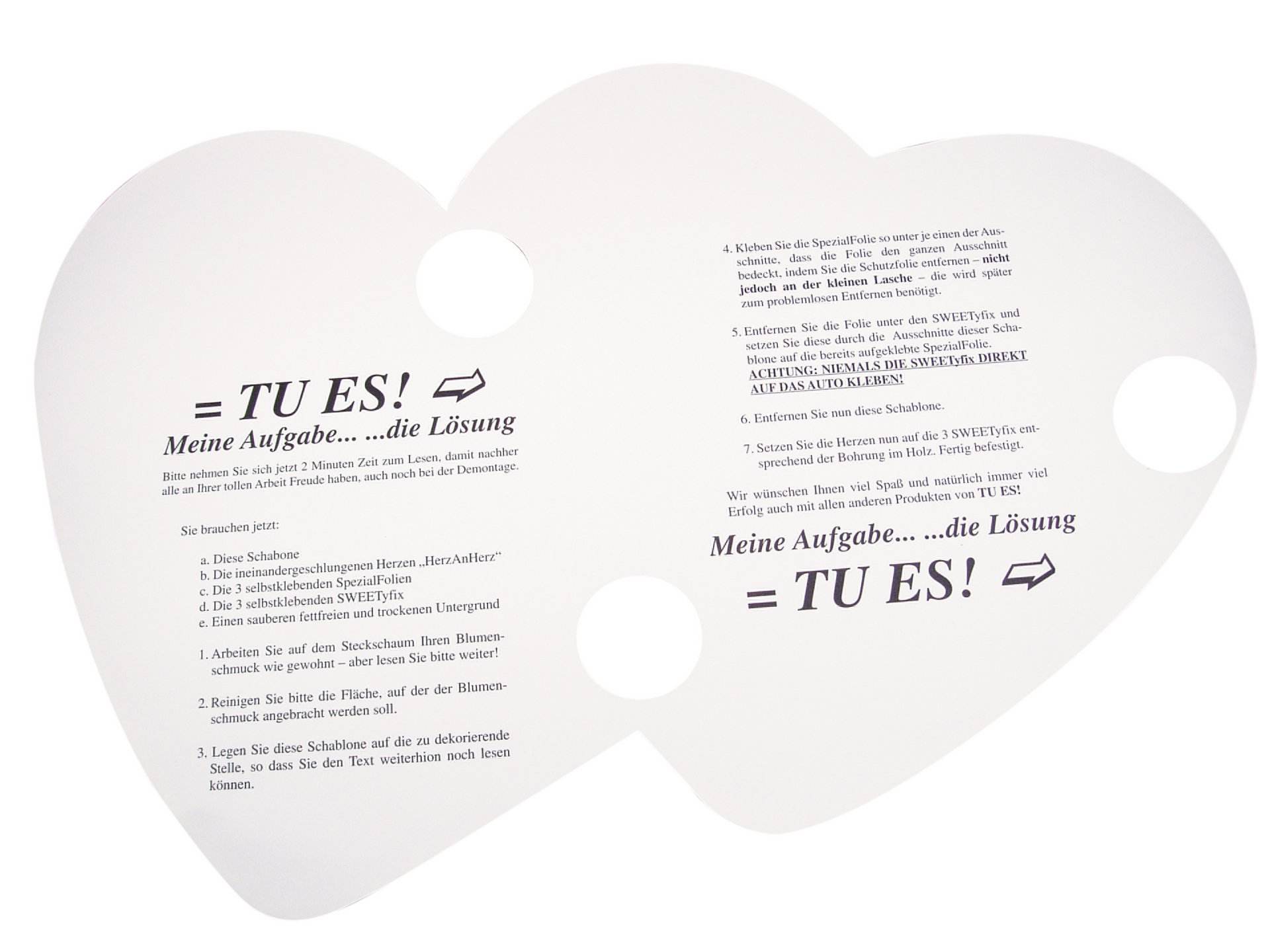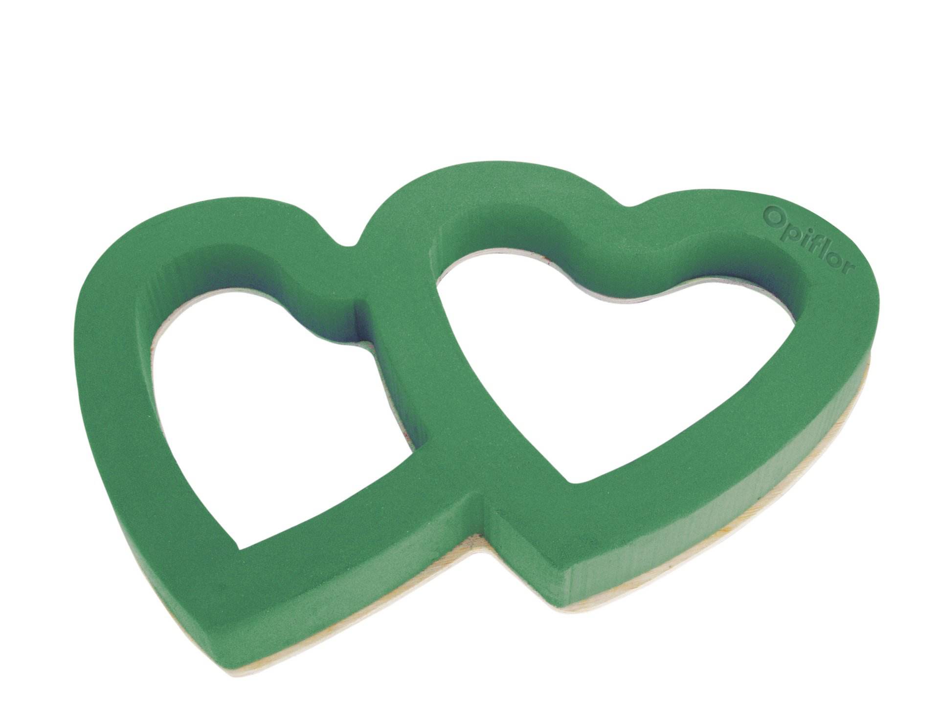 Offenes Nass-Steckschaum Doppelherz auf stabiler, verrottbarer Holzunterlage. Inklusive Opiflor Komplettset (bestehend aus Lackschutz-Schaumstoffkissen, selbstklebenden Sweetyfix und selbstklebender Spezialfolie).