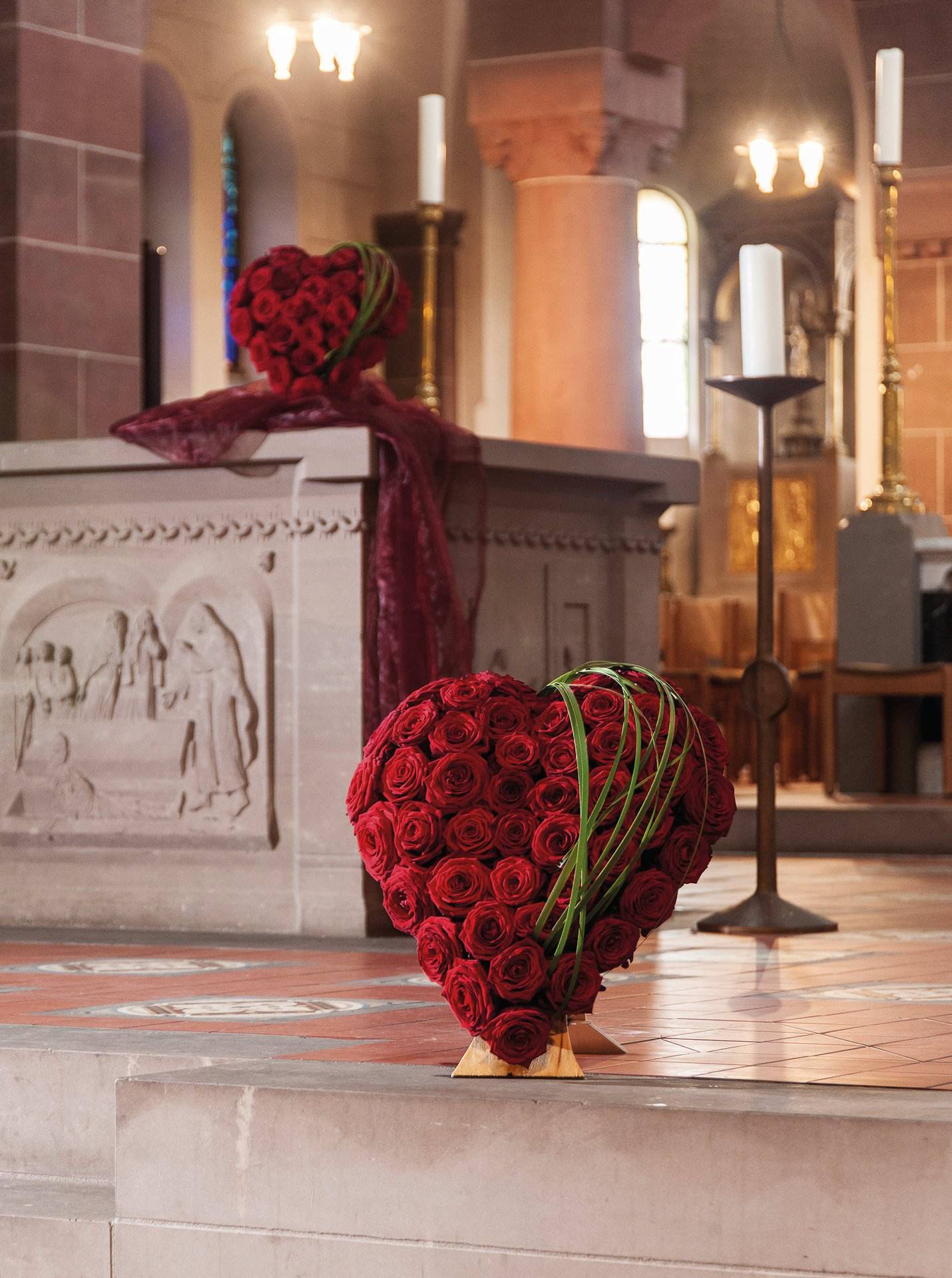 Nass-Steckschaumherz auf stabiler, verrottbarer Holzunterlage, zum Stellen.