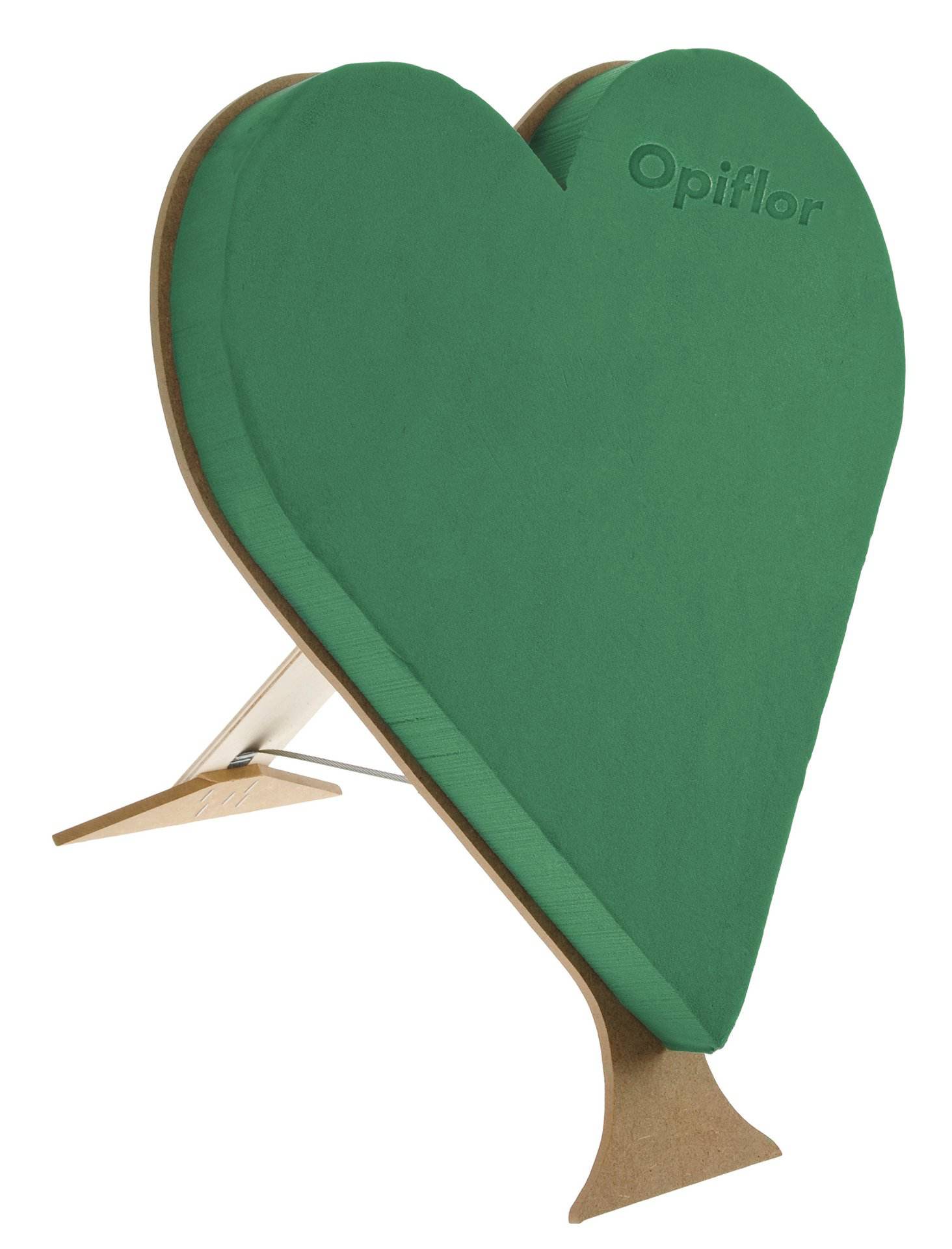Nass-Steckschaumherz mit Drainage auf stabiler, verrottbarer Holzunterlage, zum Stellen.