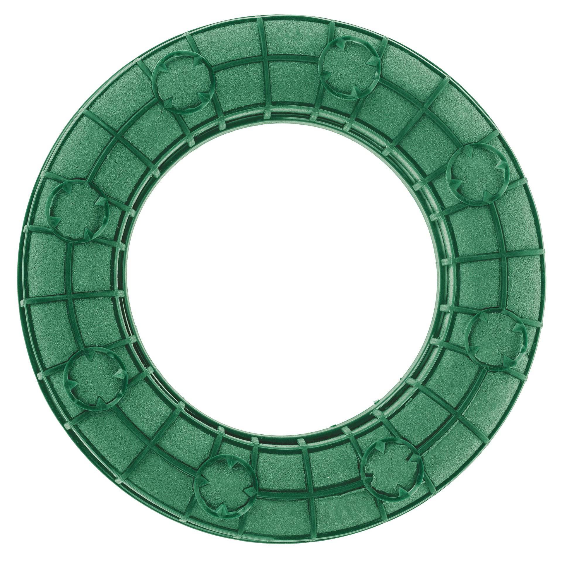 Nass-Steckschaumring auf Kunststoffunterlage mit Kunststoffgitter inkl. Aussparungen für Stabkerzen: N° 200817: für 4 Kerzen, N° 200818 und N° 200819: für je 8 Kerzen.