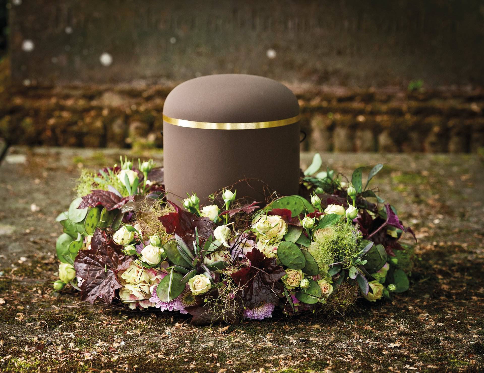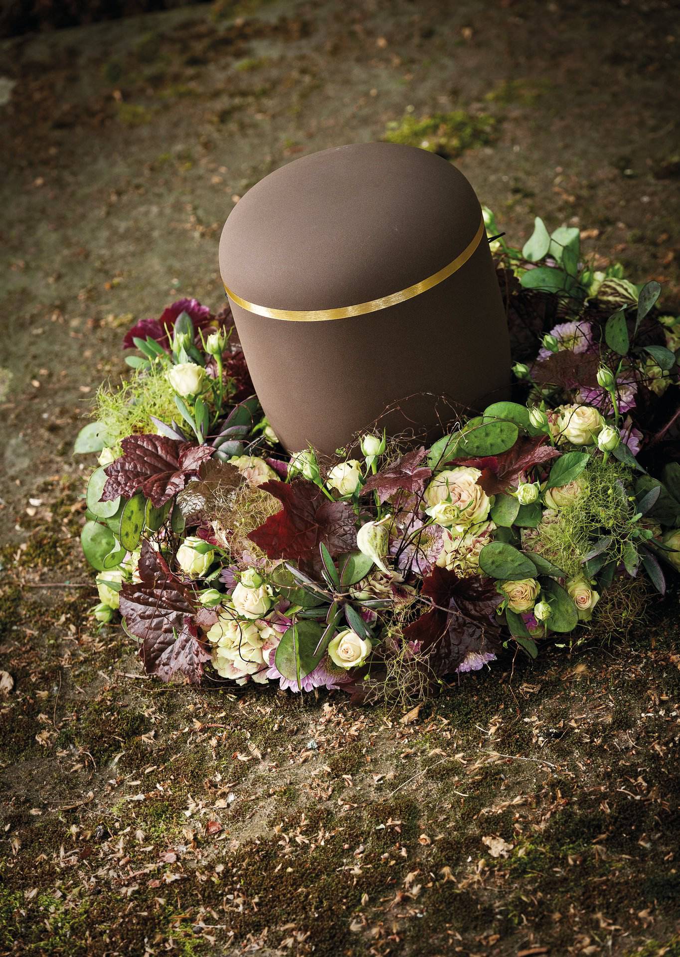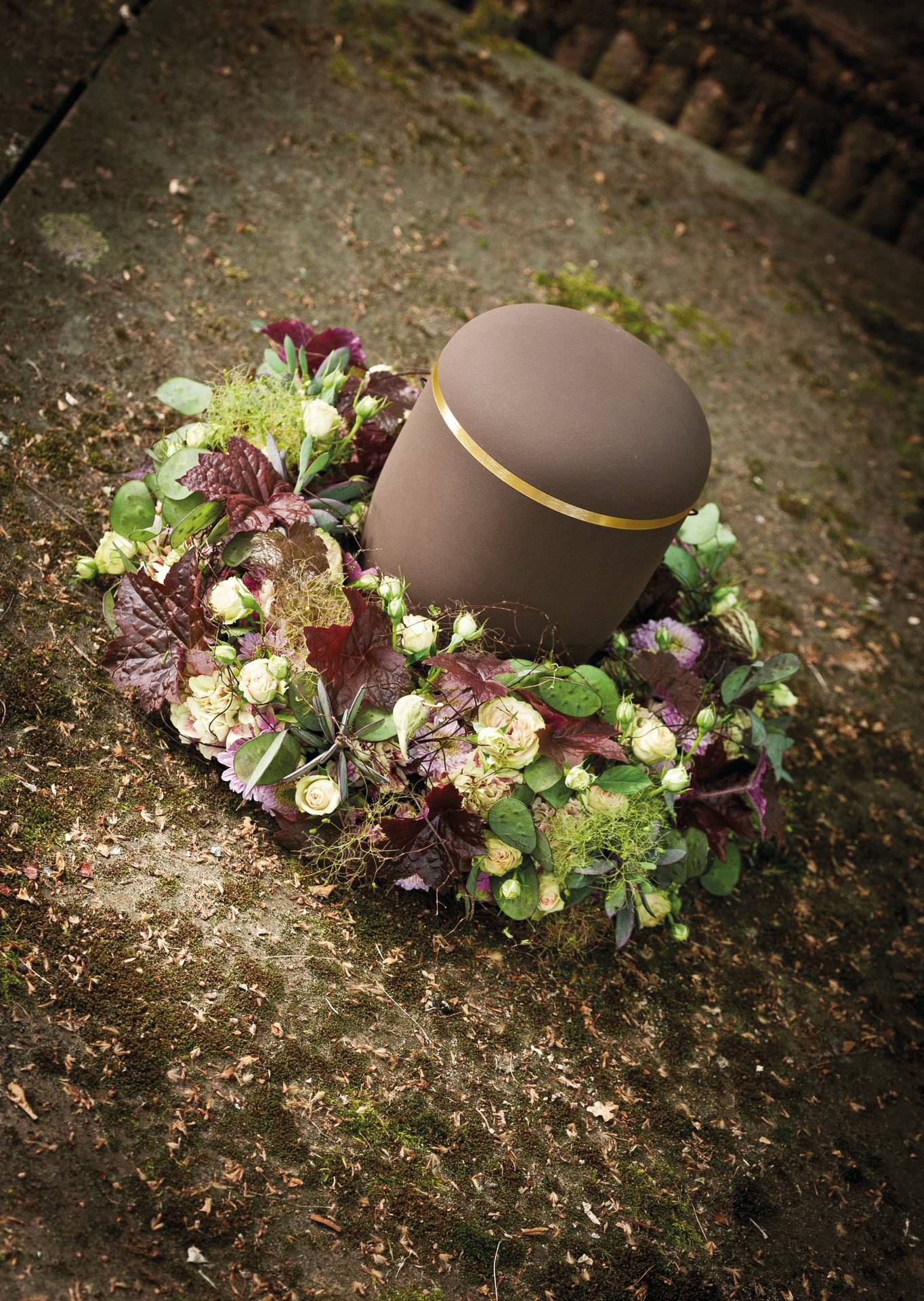 Nass-Steckschaumherz auf stabiler, verrottbarer Holzunterlage.