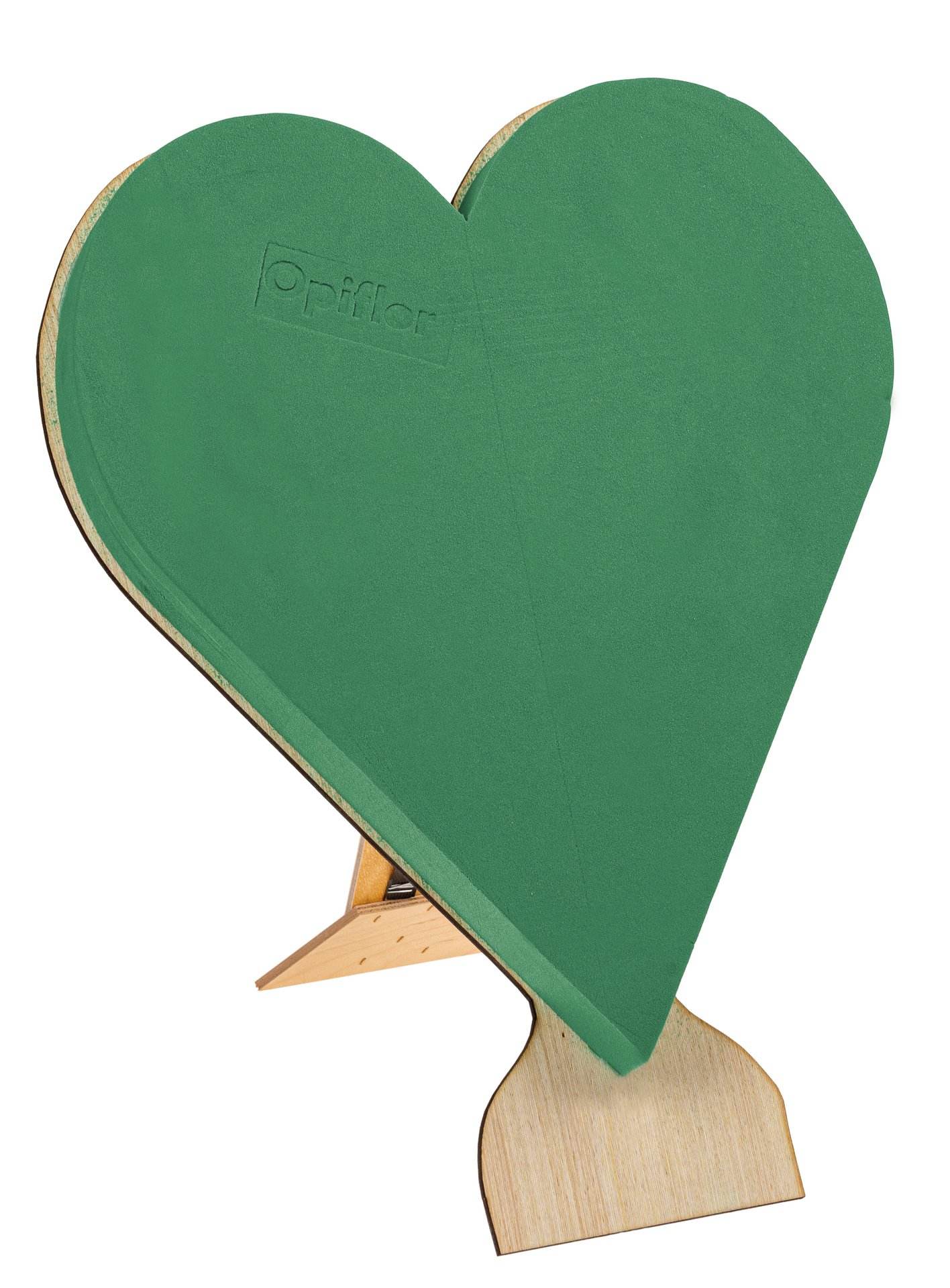 Nass-Steckschaumherz auf stabiler, verrottbarer Holzunterlage, zum Stellen.