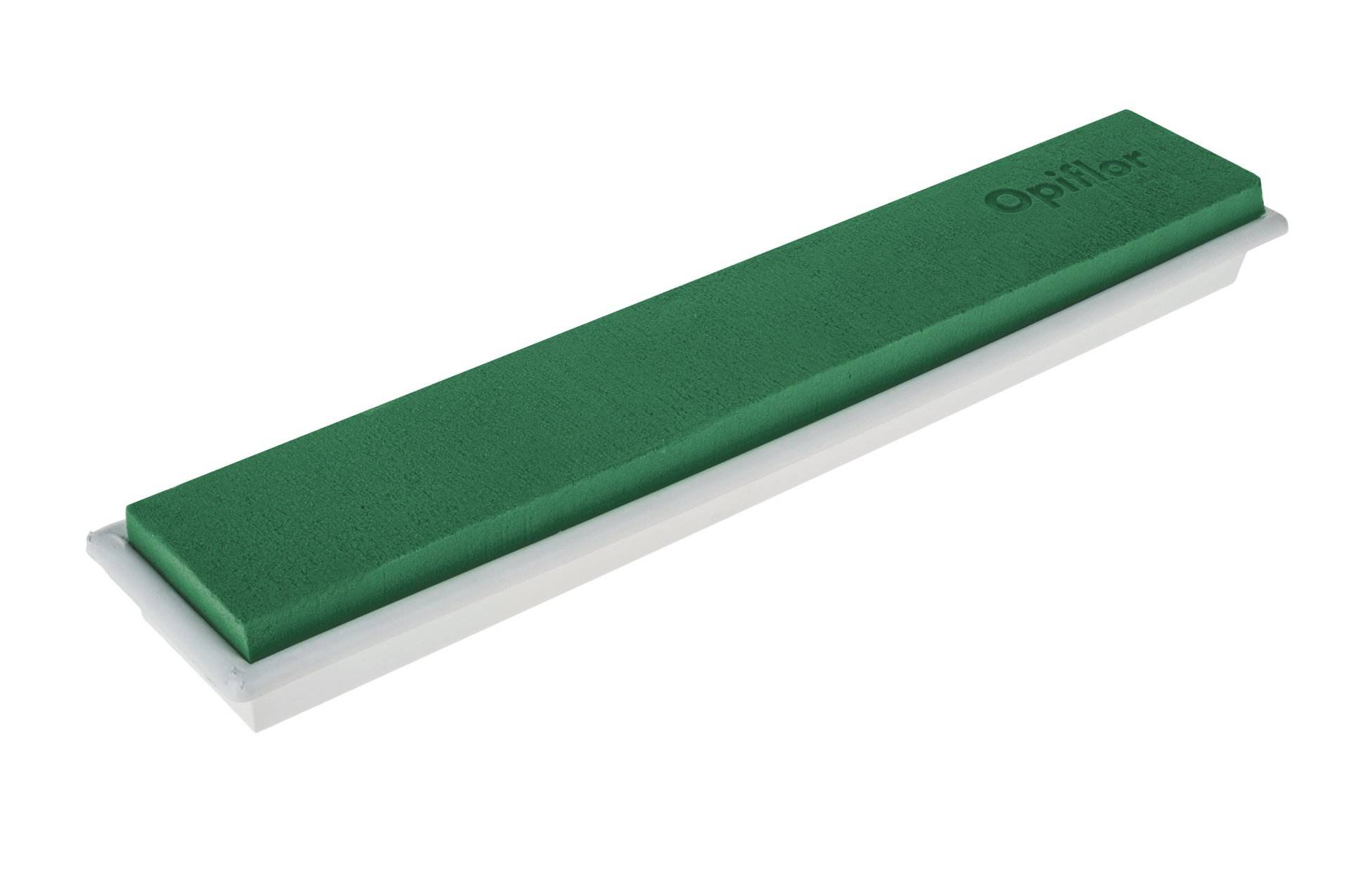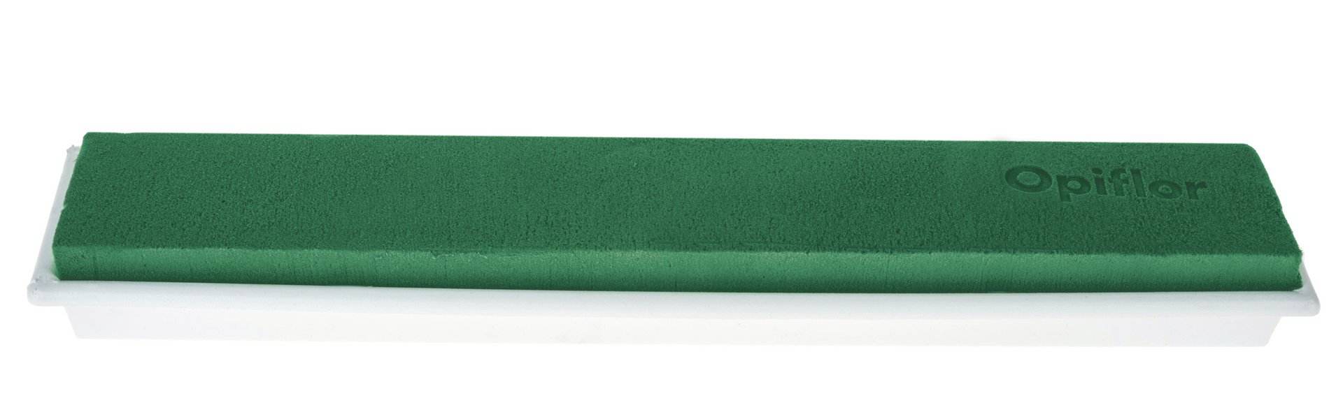 Nass-Steckschaum in wasserdichter, weißer Kunststoffschale mit praktischem Gießrand. Schalenrand: ca. 1 cm breit.