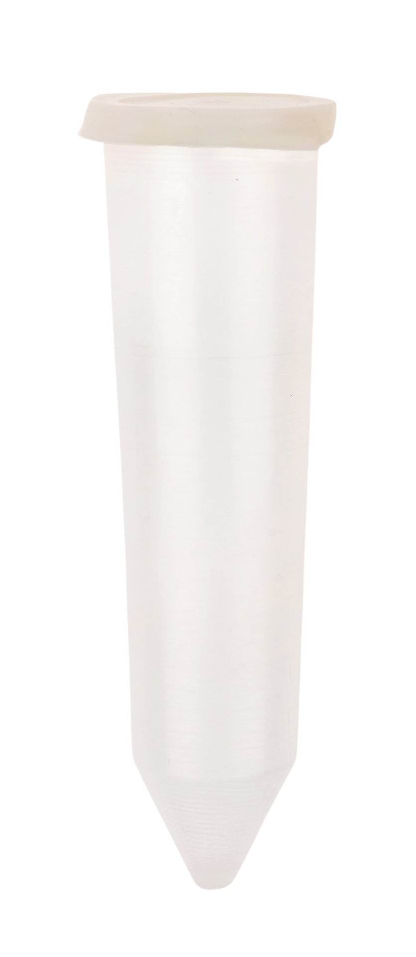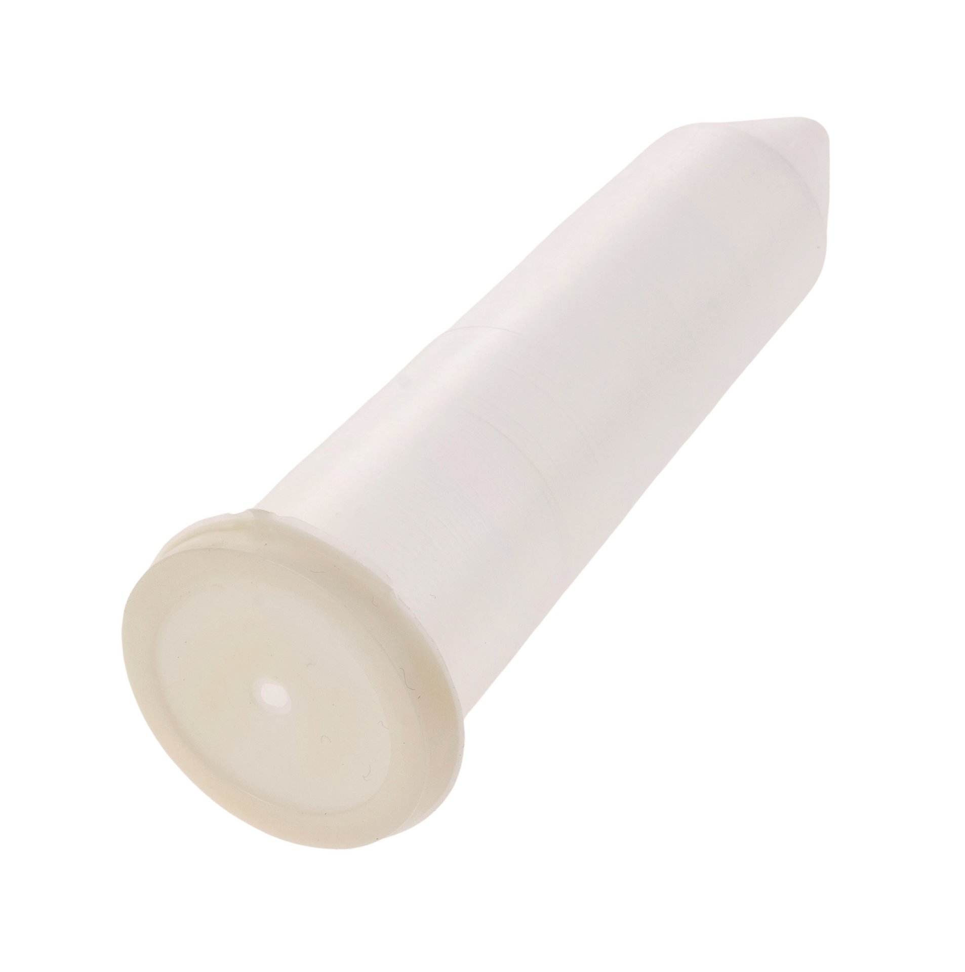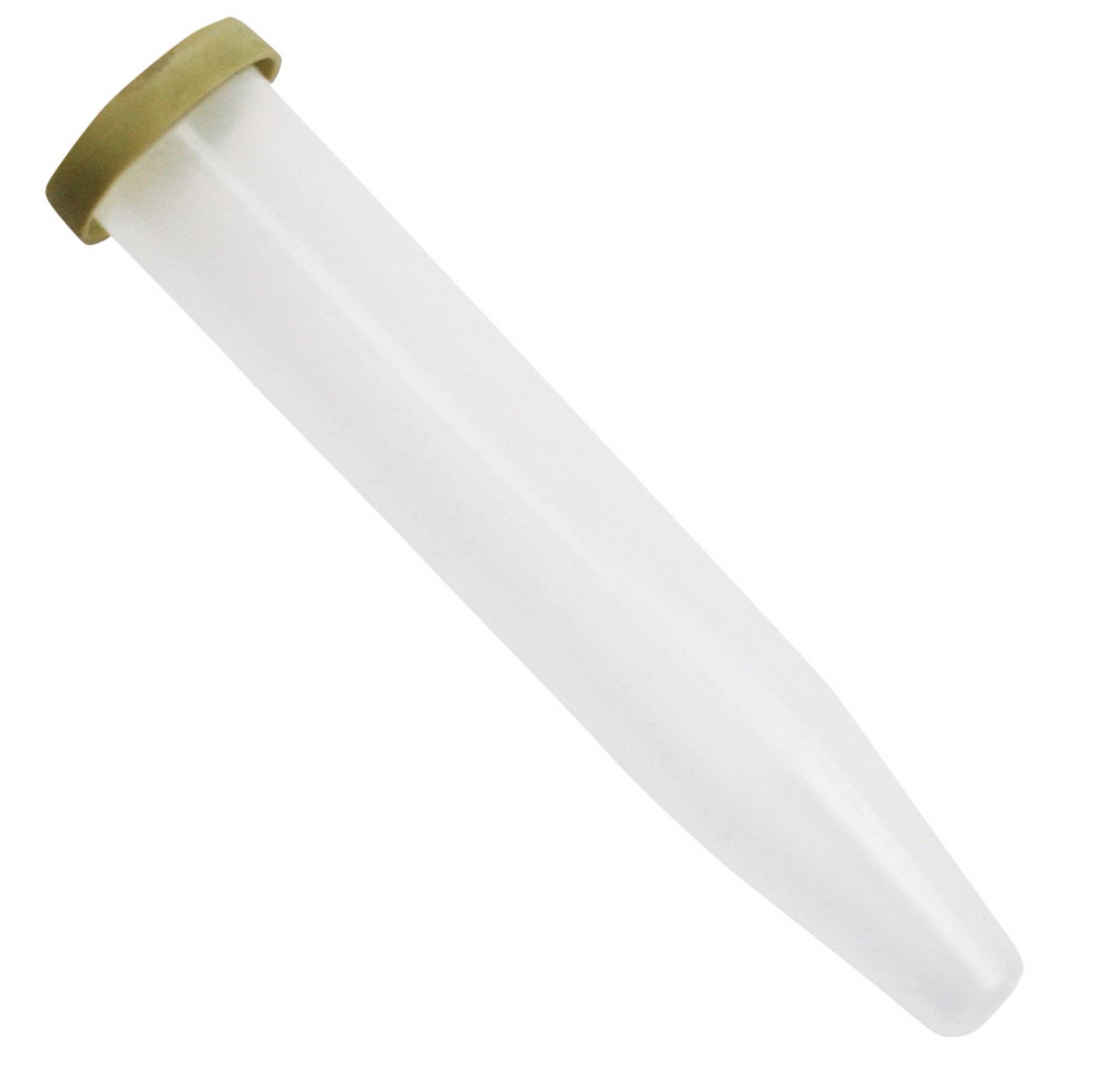 Transportvase aus Kunststoff mit Gummideckel für einzelne Blumen.