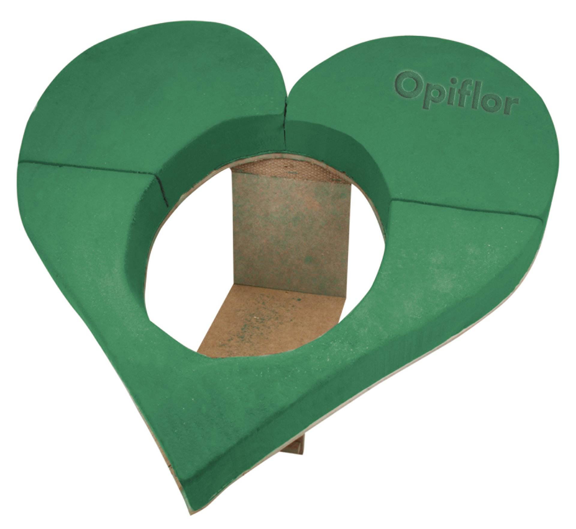 Nass-Steckschaumherz auf stabiler, verrottbarer Holzunterlage.