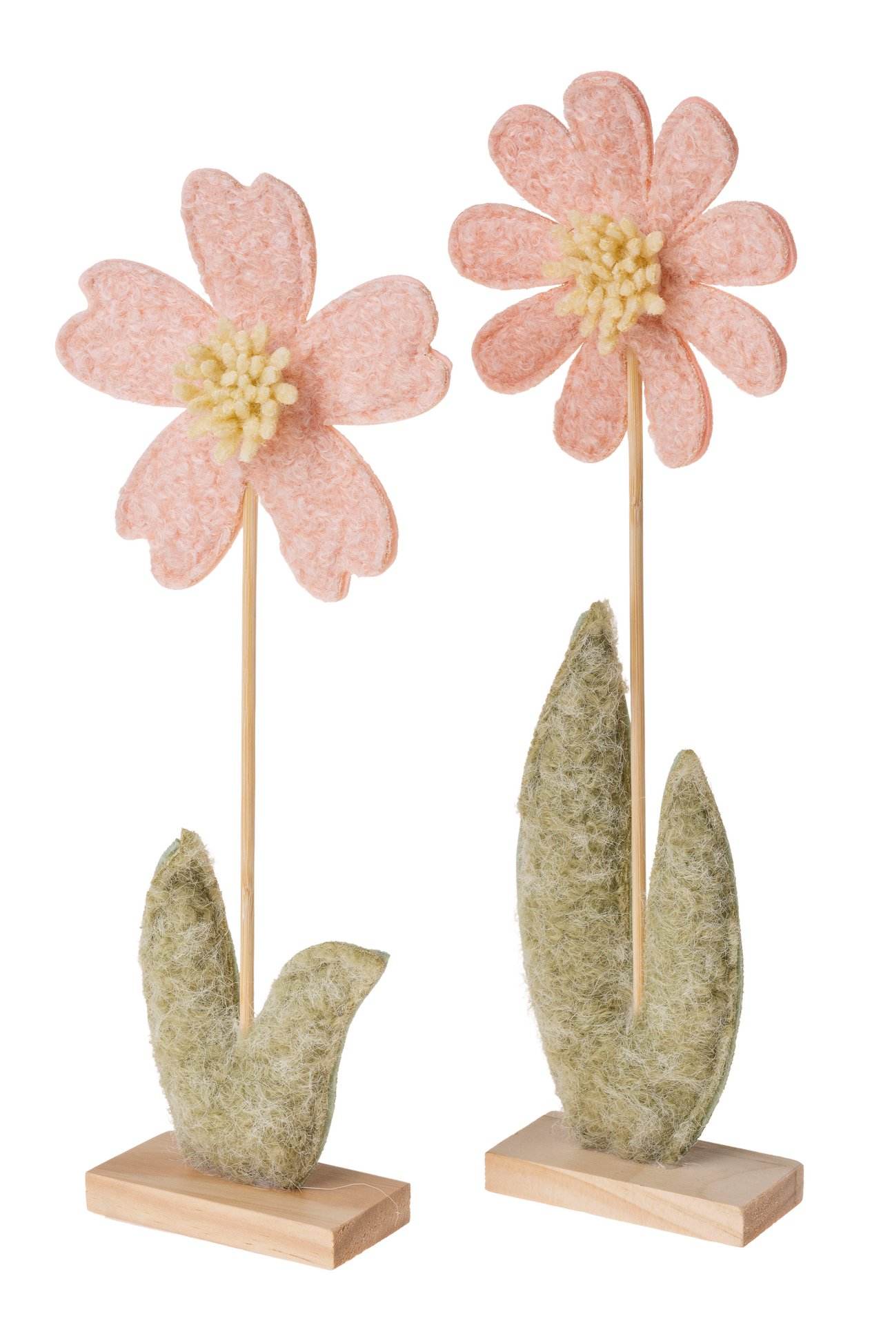 Figurine florale en polyester sur socle en bois. 2 modèles assortis. Dimensions : 11,5 x 4 x 29 cm et 11 x 4 x 31 cm.