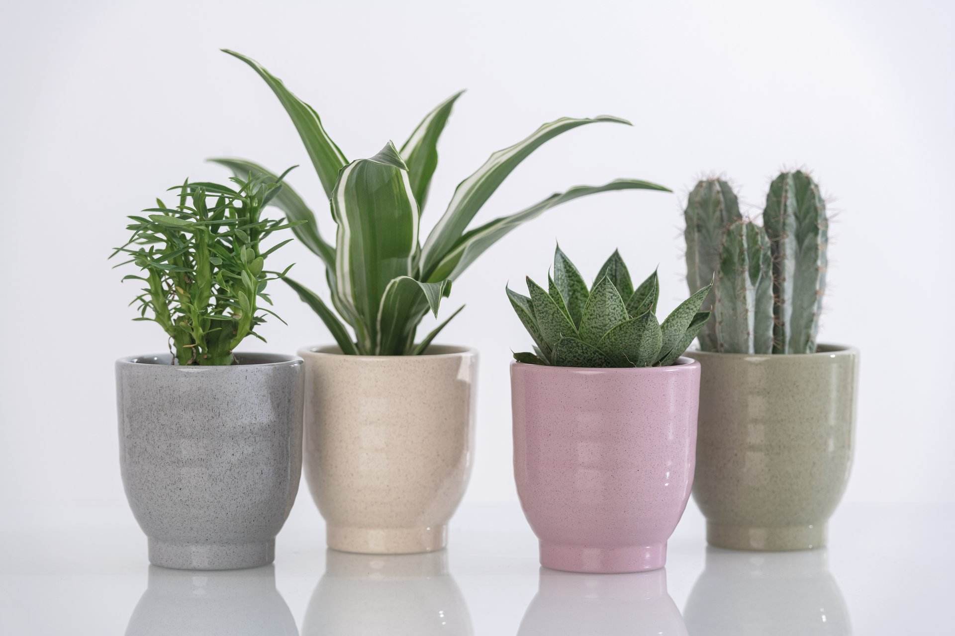 Pot en céramique intemporel de forme cylindrique bombée avec un pied étroit et décalé, recouvert d'un vernis aspect pierre mouchetée. Assortiment de 4 couleurs : beige, gris, rose, kiwi.