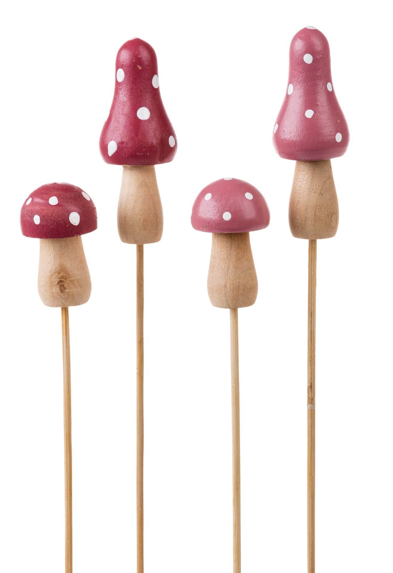 Champignon en bois de pin, couleurs rose et mûre. Lot de 4. Contenu du sachet : 2 pièces par taille et par couleur, soit 8 champignons au total.