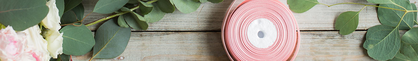 Zartes Organzaband mit gewebter Kante. Größen: 6 mm x 50 m, 15 mm x 50 m und 25 mm x 50 m.