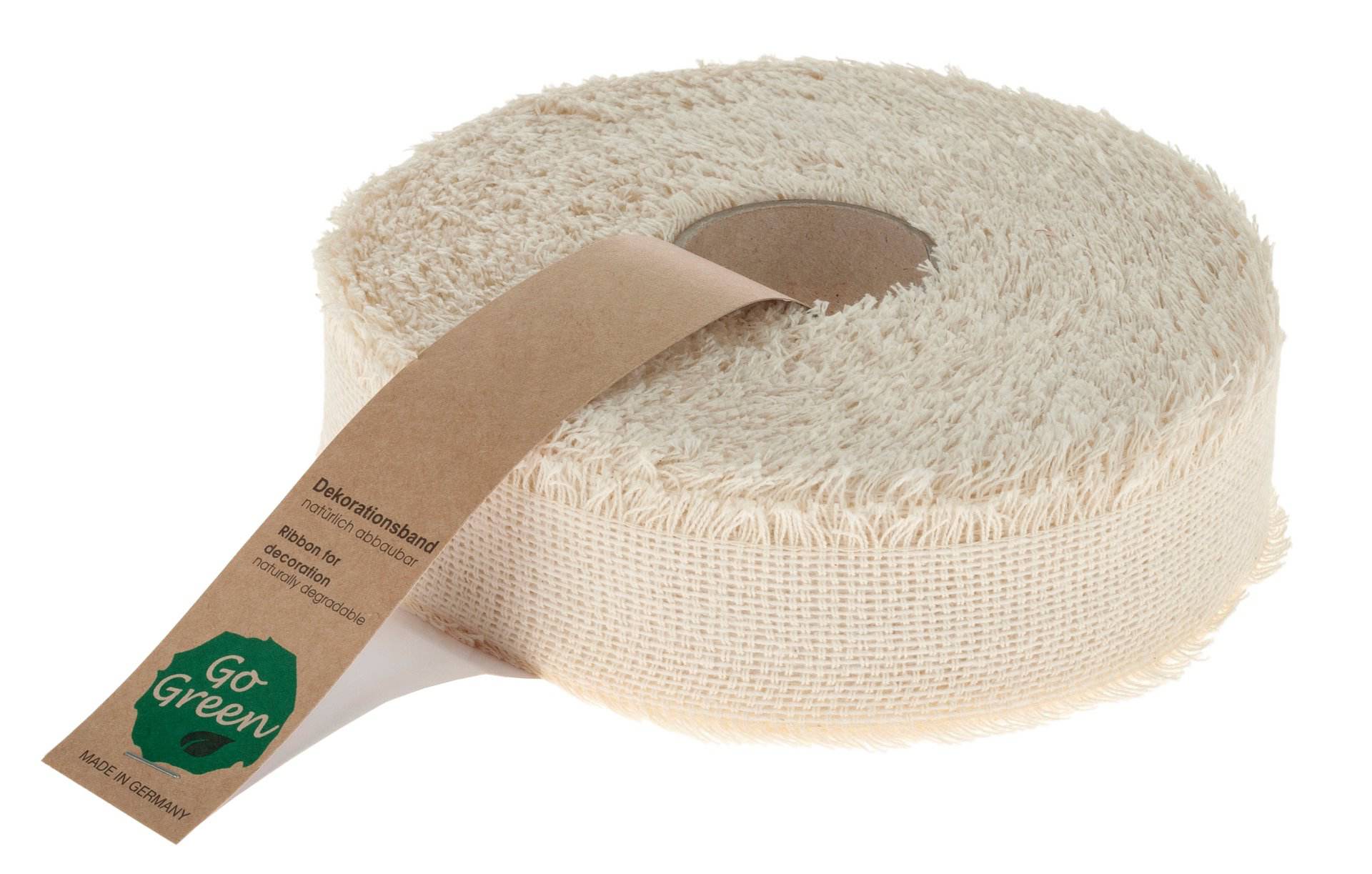 Dekoband aus Baumwolle mit Fransen, hergestellt aus nachwachsenden Rohstoffen und biologisch abbaubar.