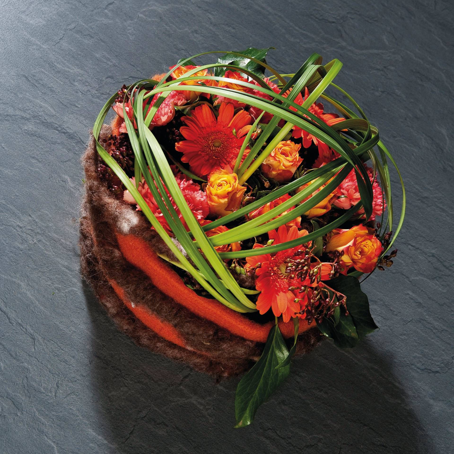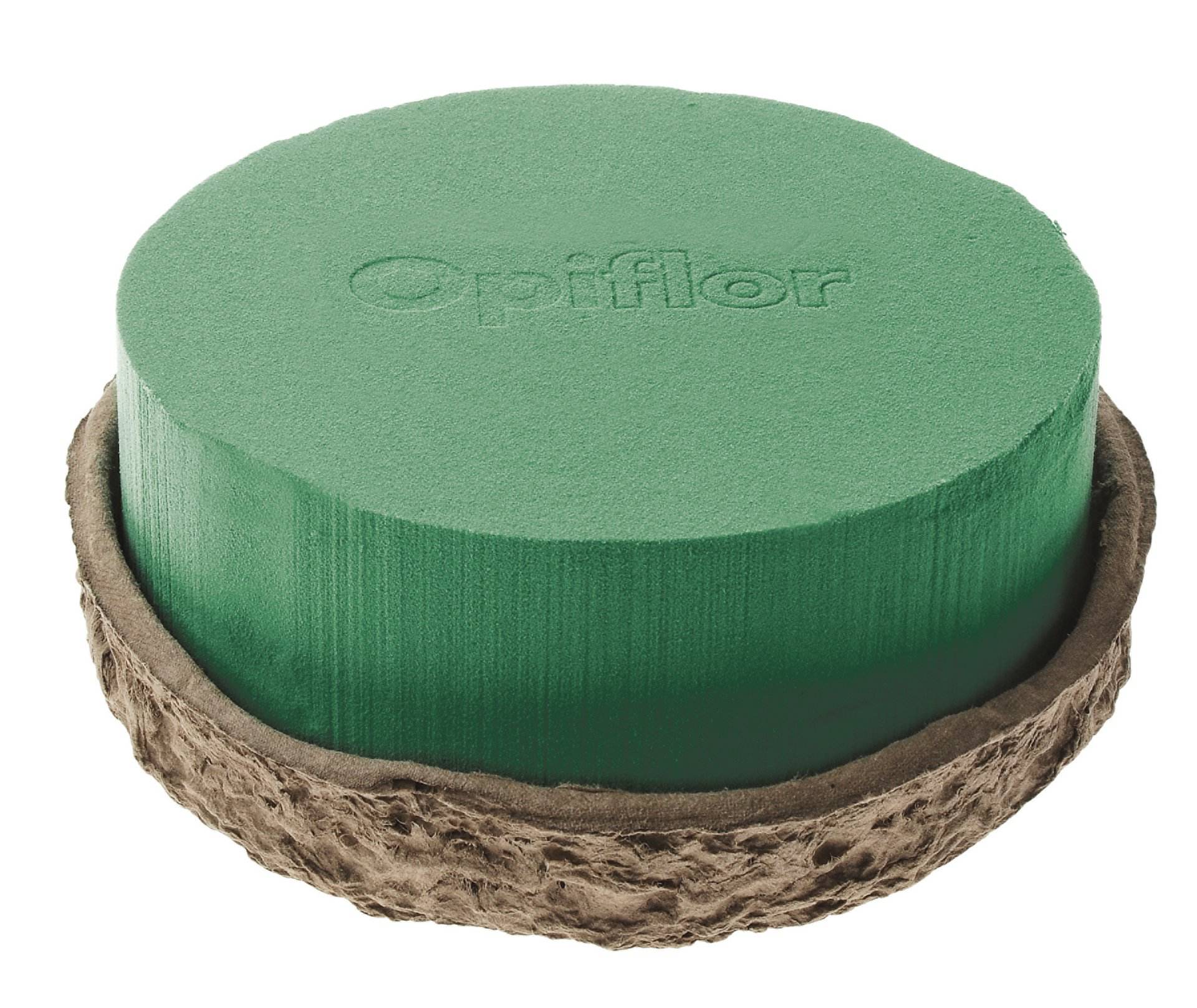 Nass-Steckschaum auf einer wasserabweisenden, kompostierbaren Biodurunterlage.