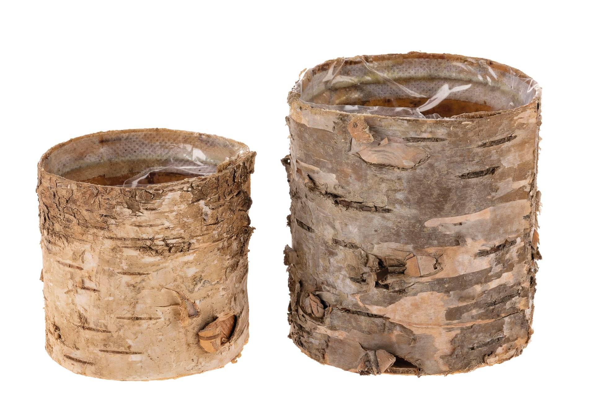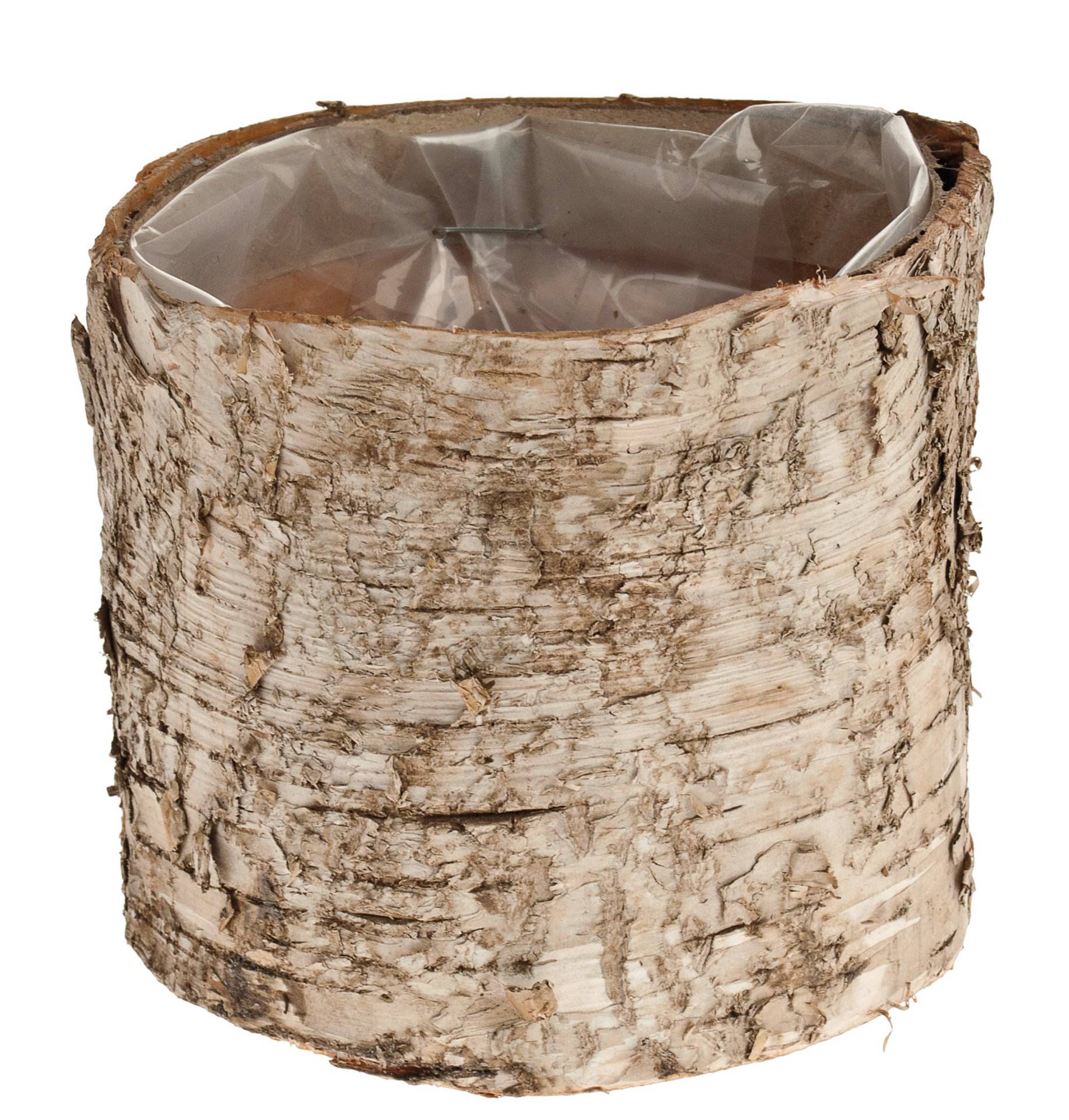 Runder Pflanztopf aus Birkenrinde. Innen foliert.