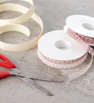 2. Schneiden Sie Bänder in verschiedenen Farben, Breiten und Materialien entsprechend Ihrer Wunschlänge zurecht.