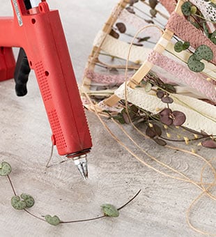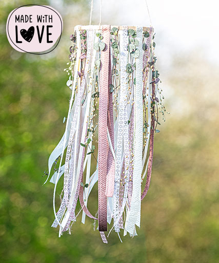 4. Optional können Sie Ihren sommerlichen Bänderkranz nun noch mit haltbaren oder zu trocknenden Blumen, Blättern & Ranken schmücken.