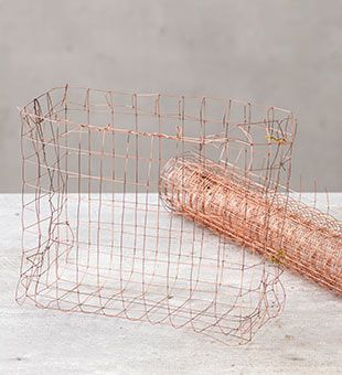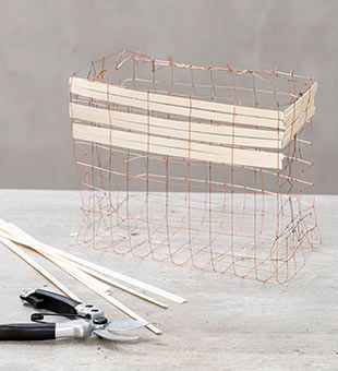 1. Schneiden Sie sich Ihren Draht zurecht, formen Sie ihn in die gewünschte Form und verbinden Sie die Seiten miteinander, indem Sie eine Reihe des Gitters überstehen lassen und aufschneiden. Befestigen Sie die übersteheneden Drahtenden an der gegenüberliegenden Seite.